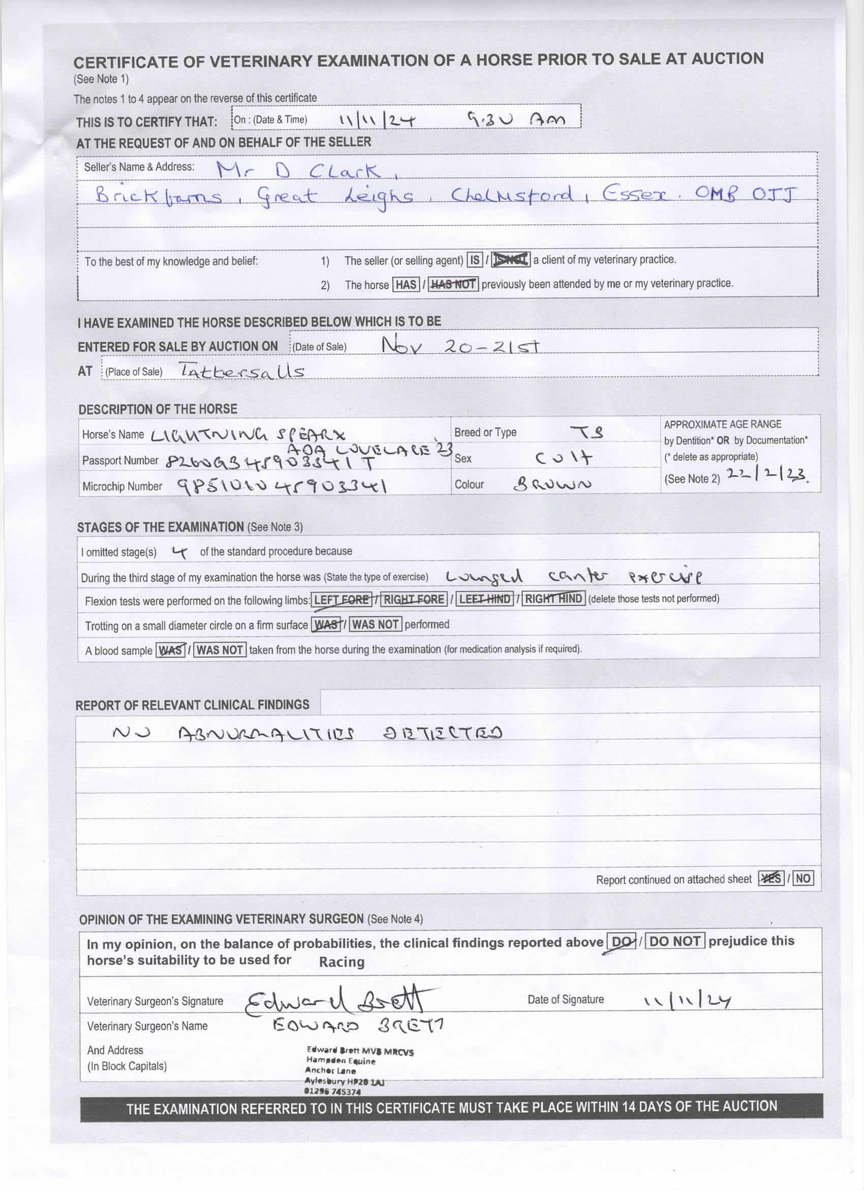 Online Sale - 19th November 2025 lot 161 One For Harvey (GB) (F. by Tasleet (GB)), Harraton Stud (J. & S. Birkett)=>Jane Kennedy 5,000 gns