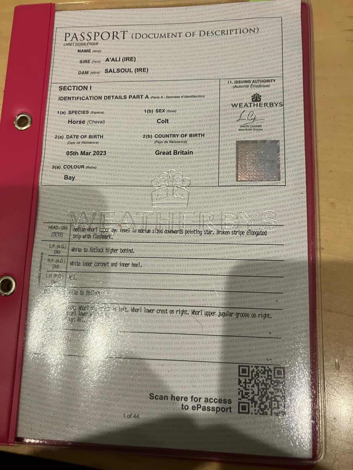 Vices/Declarations: This lot is not vaccinated in accordance with the current BHA influenza requirements and further vaccinations will be required before it can enter a UK racecourse. No valid EIA Coggins received.