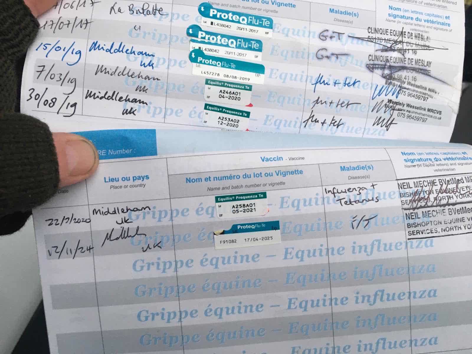 Vices/Declarations: This lot is not vaccinated in accordance with the current BHA influenza requirements and further vaccinations will be required to be compliant. No valid EIA Coggins received.