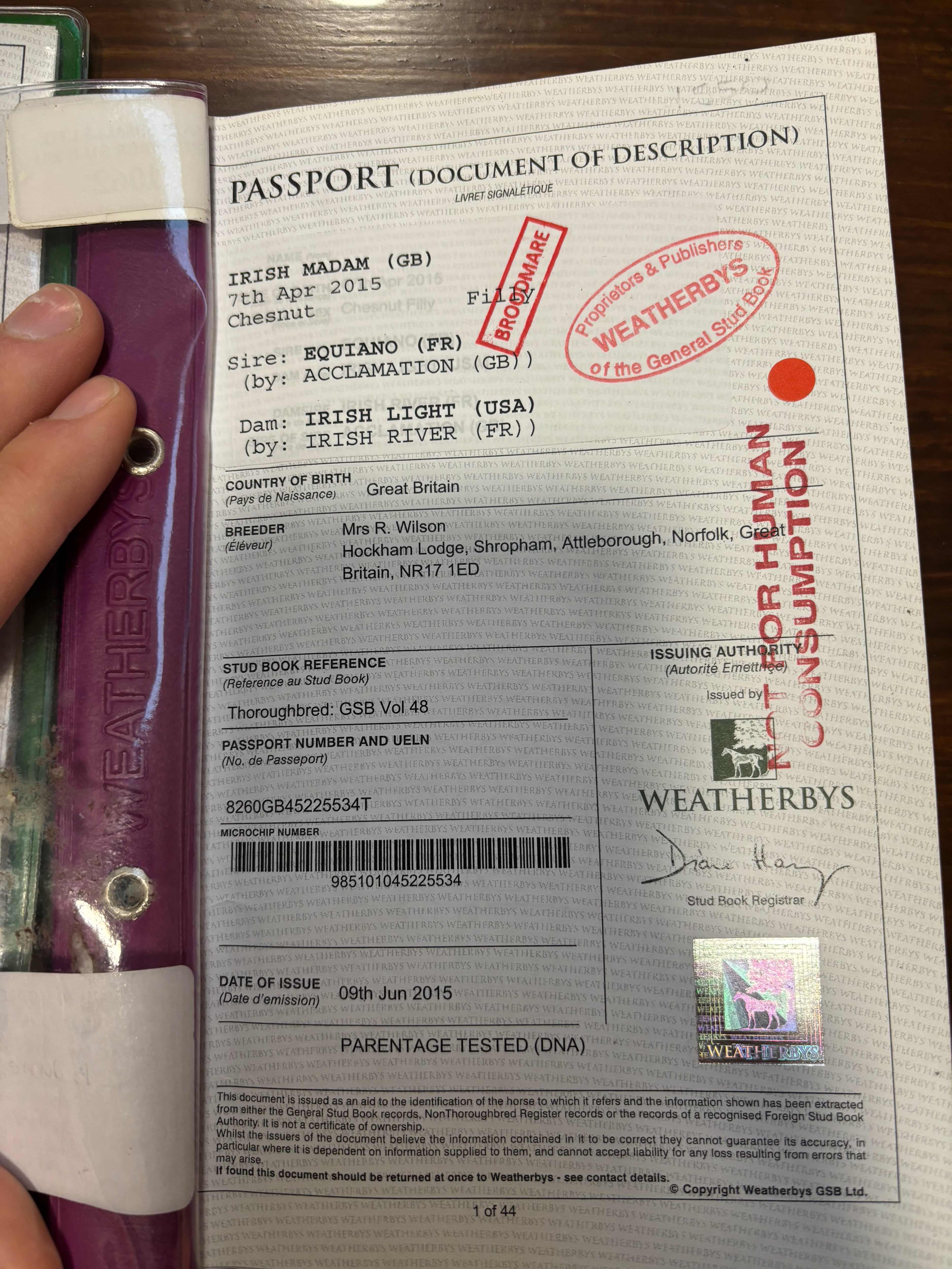 Vendor's Notes: Irish Madam is the dam of 2 foals of racing age and 1 winner Global Effort. Her 2023 Bated Breath realised €25k as a yearling. She is in foal to Nando Parrado.
