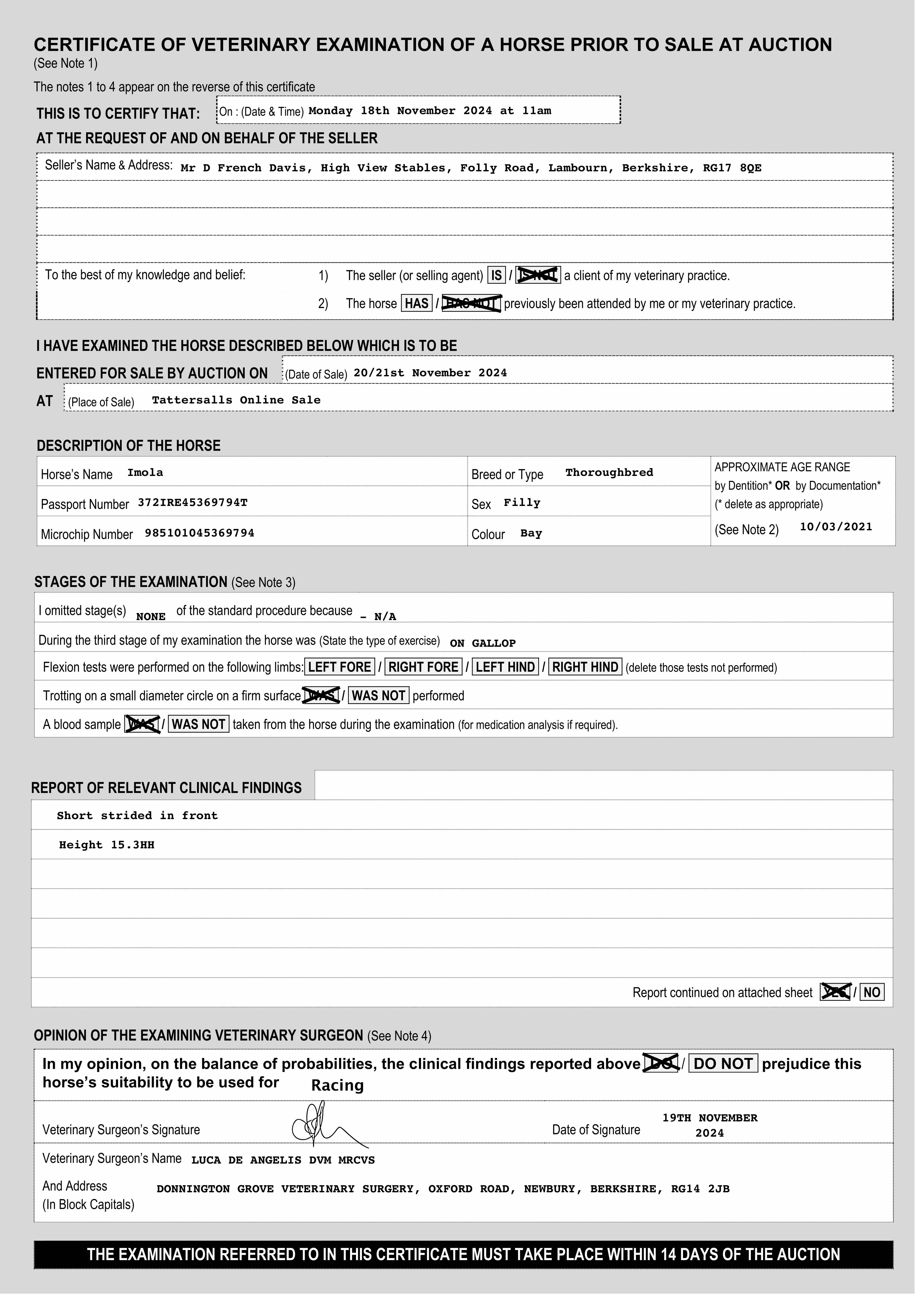 For time sensitive requests please call Tattersalls on +44(0)1638665931