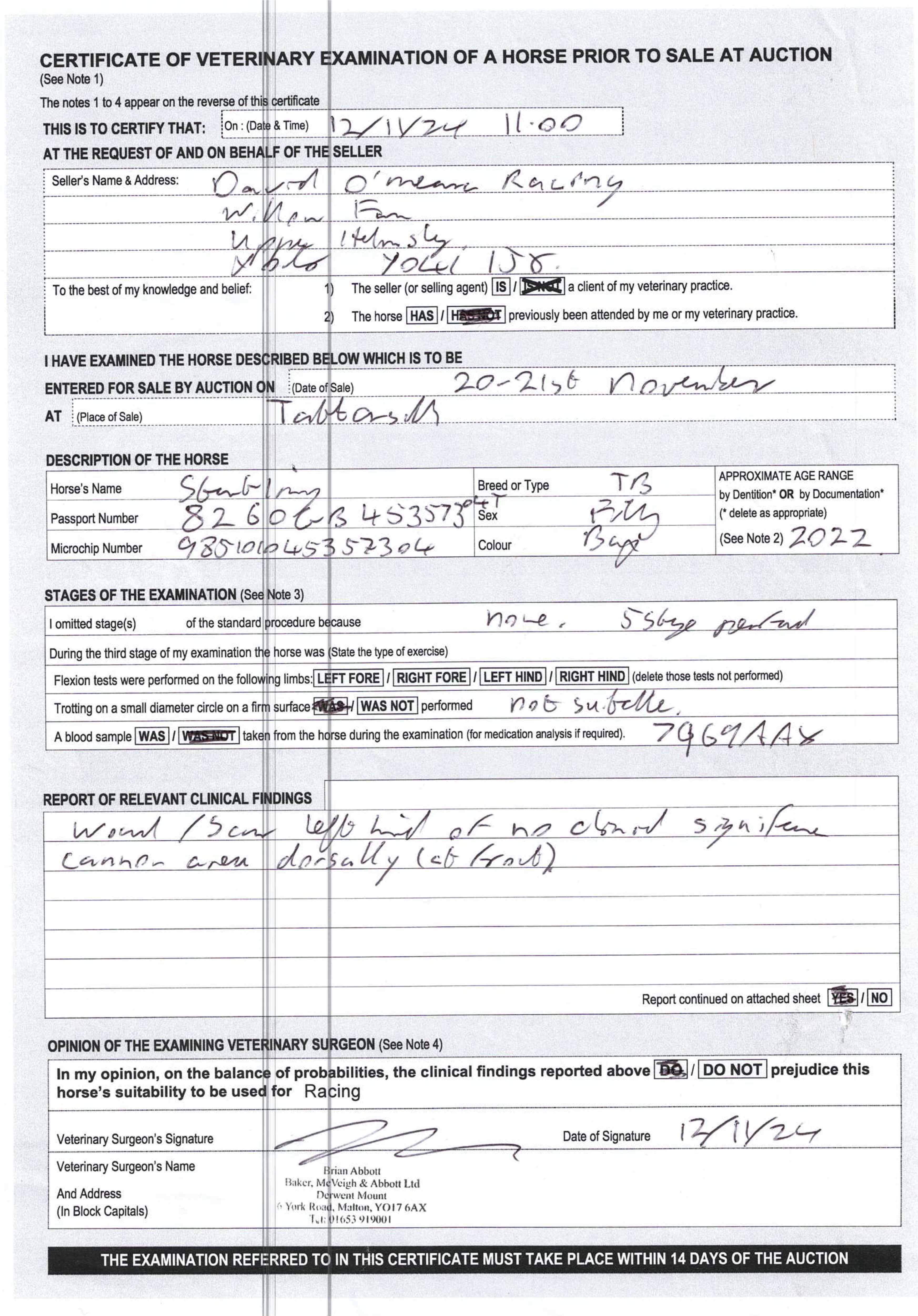 Consignor: David O'Meara Racing