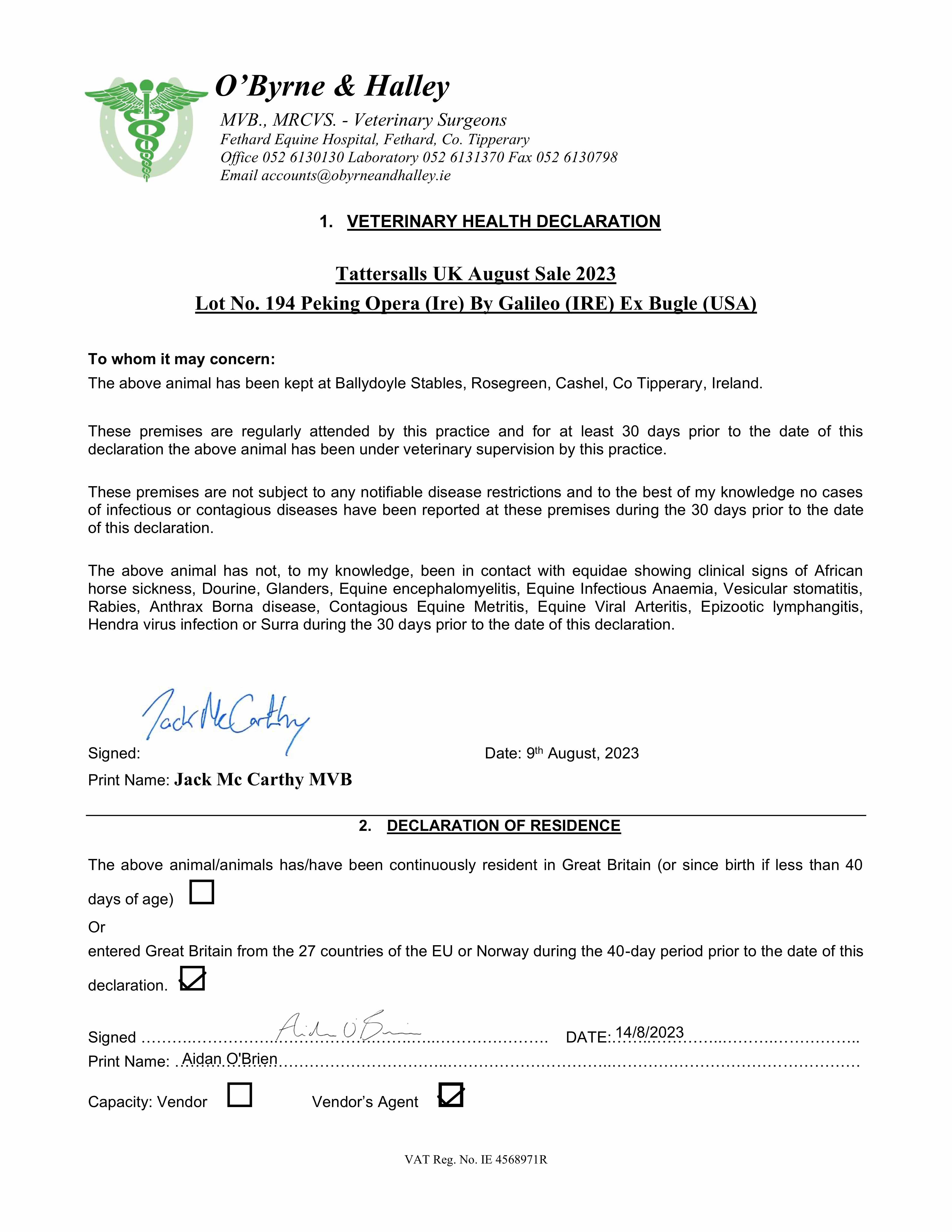 Friday 11 August:  PEKING OPERA (IRE), won 2 races at 2 and 3 years, 2023 and £86,130 and placed twice including third in Ballyroan Stakes, Naas, Gr.3.