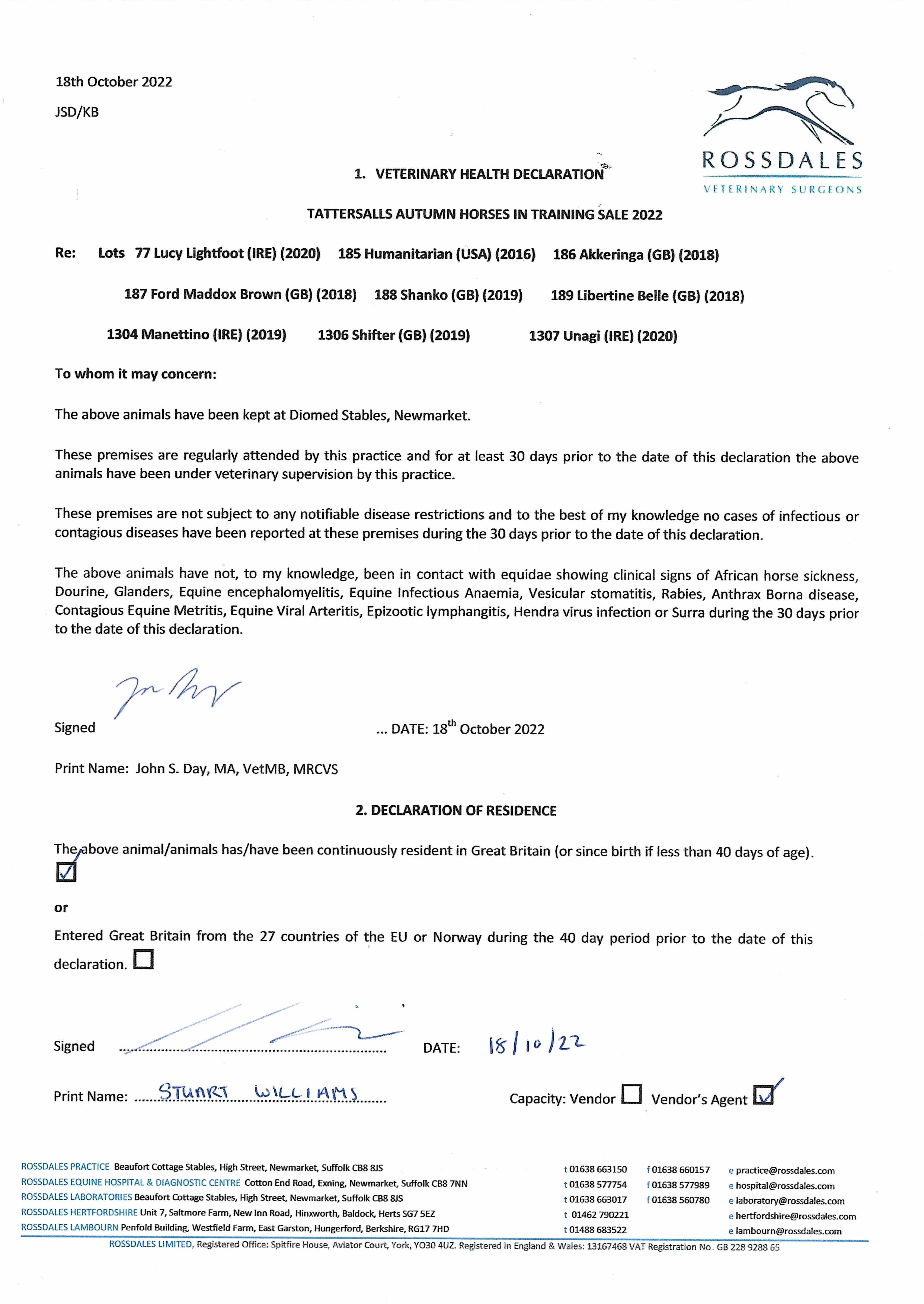 Consignor: Jamie Railton (Agent)