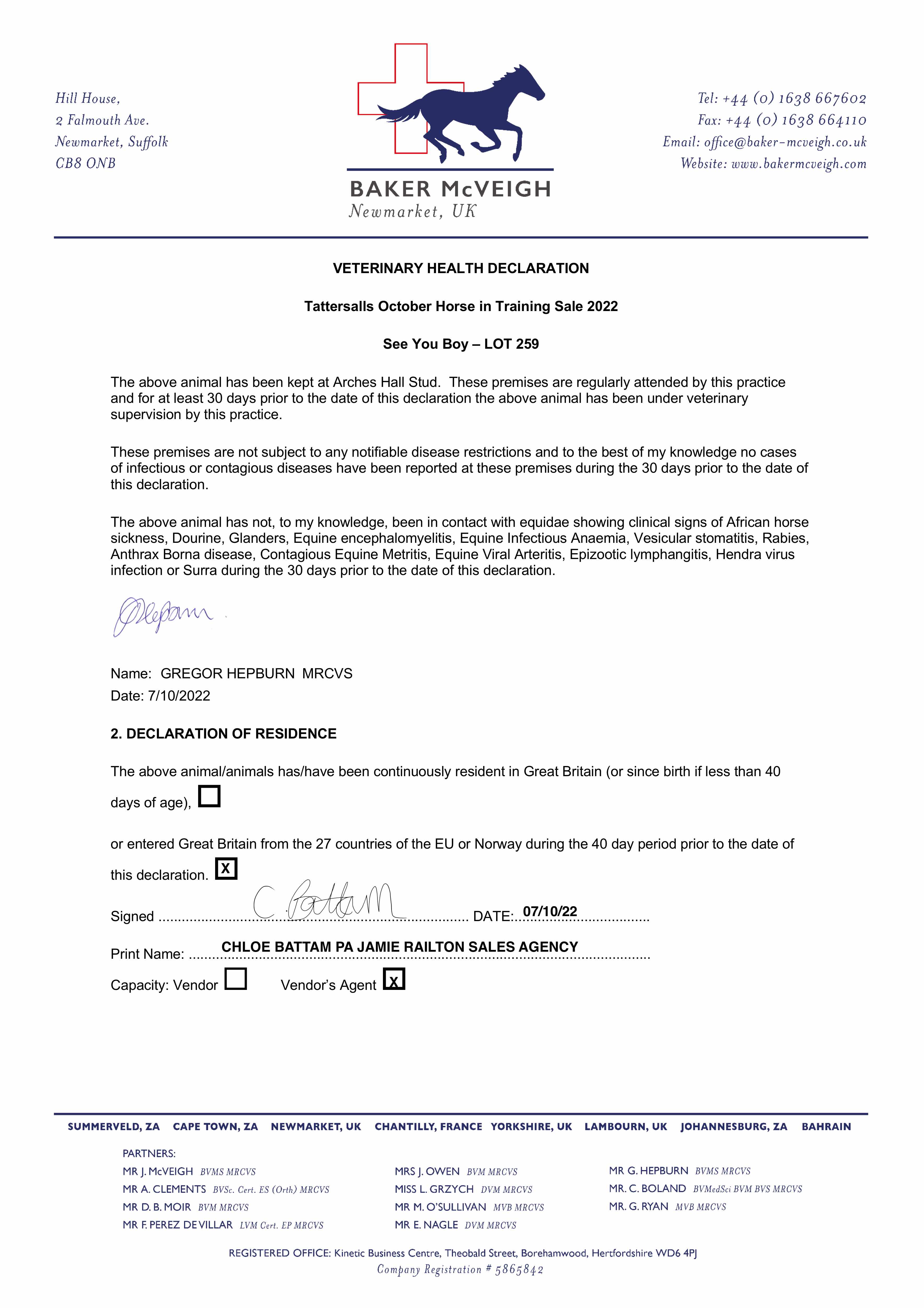 Autumn Horses In Training Sale 2023 lot 260, Prestige Place (M. Botti)=>Marco Botti 14,000 gns