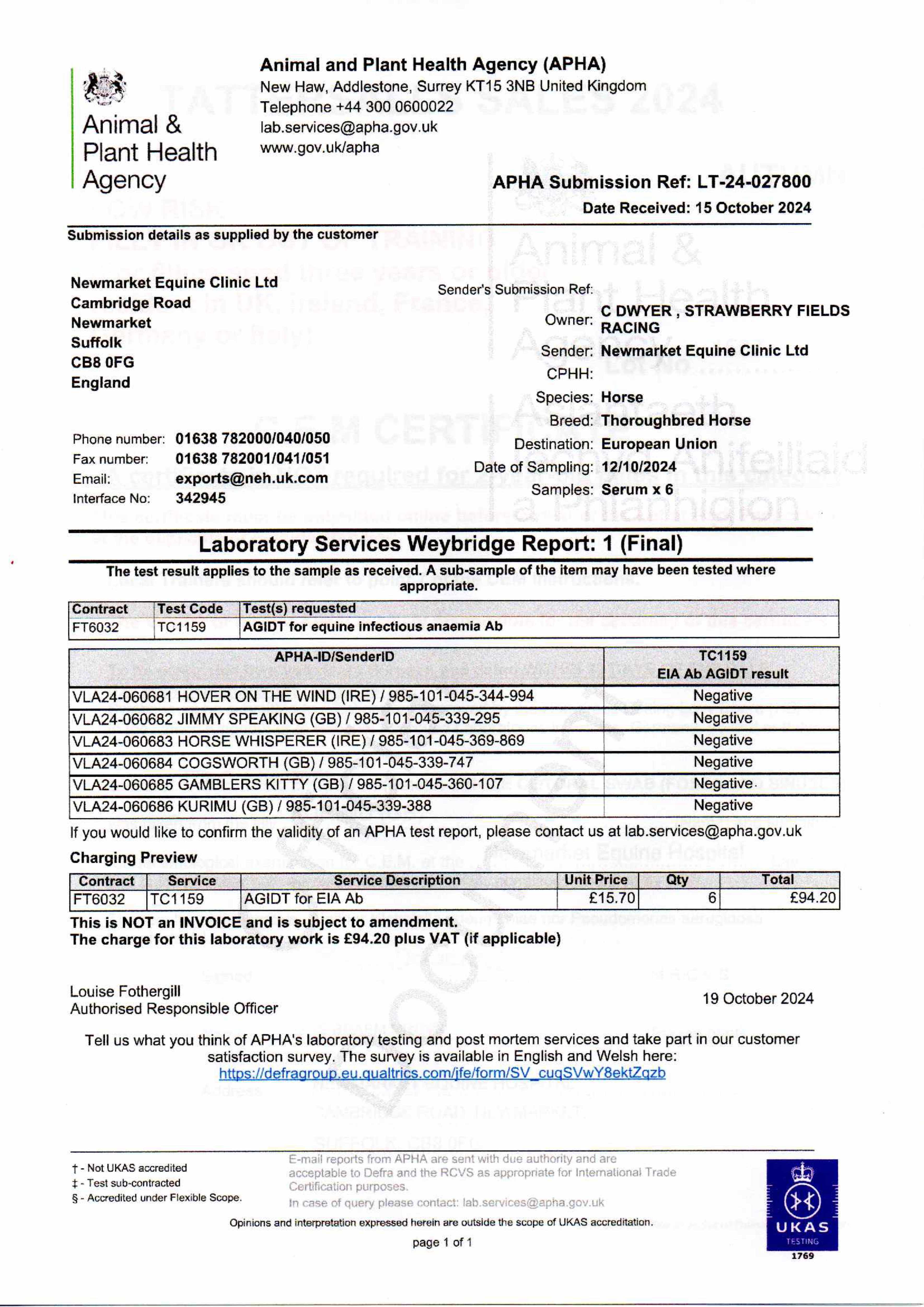 Consignor: Strawberry Fields Racing (C. Dwyer)