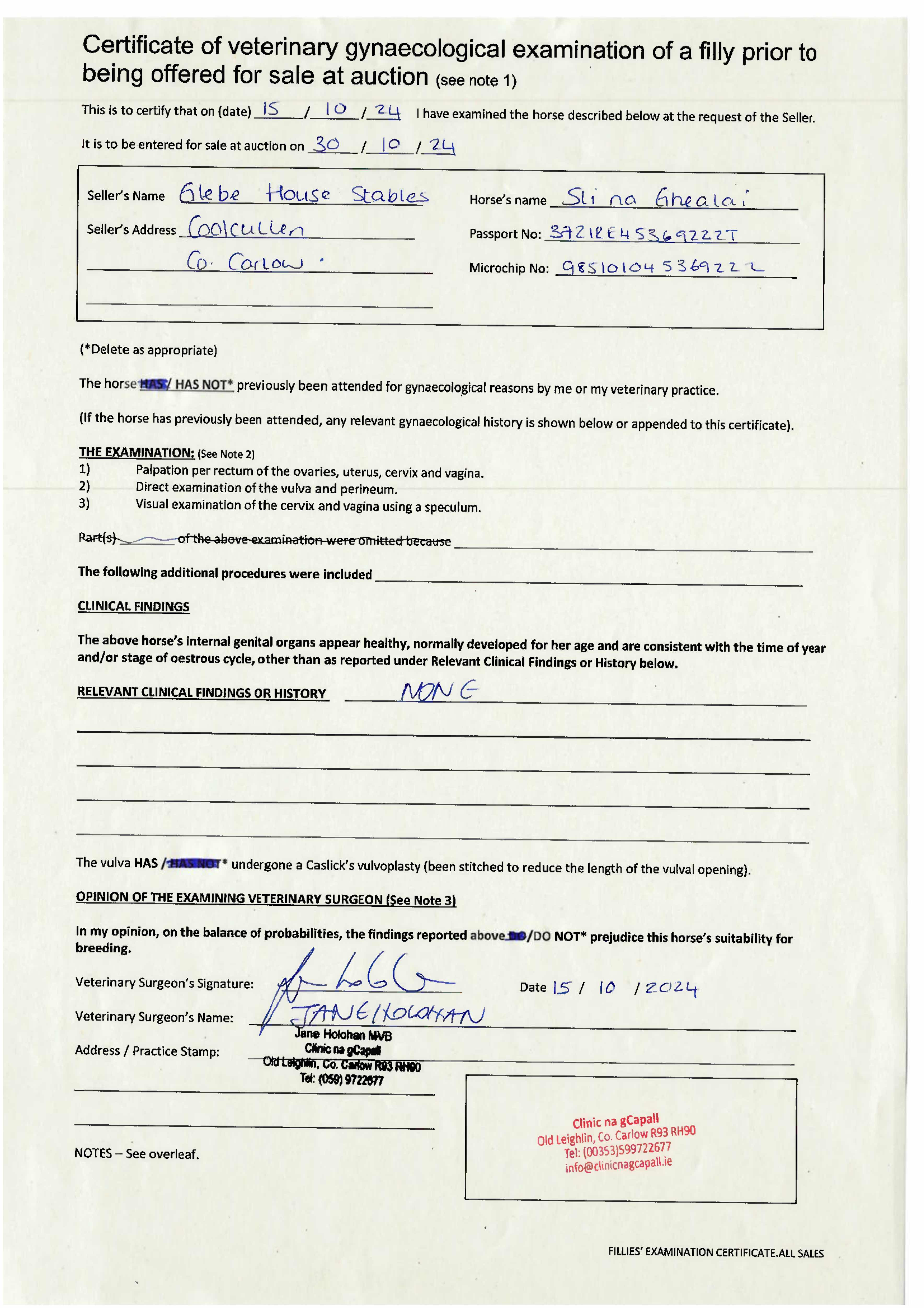 Consignor: Glebe House Stables, Ireland (J. S. Bolger)