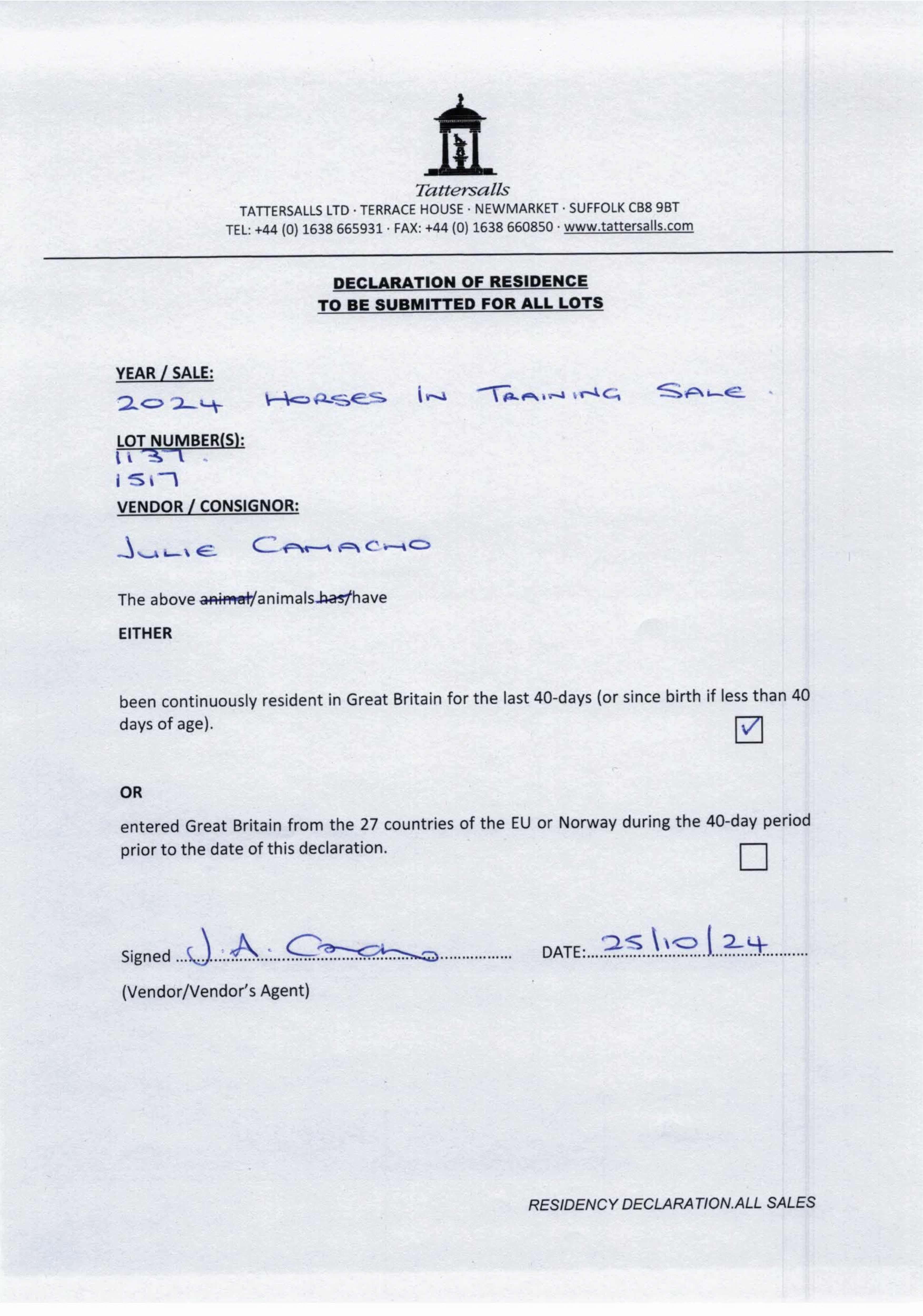 September Yearling Sale Part II 2024 lot 557 F. 2023, Rathbride Farm=>Società di Allenamento Pierdomenico Danilo €2,000