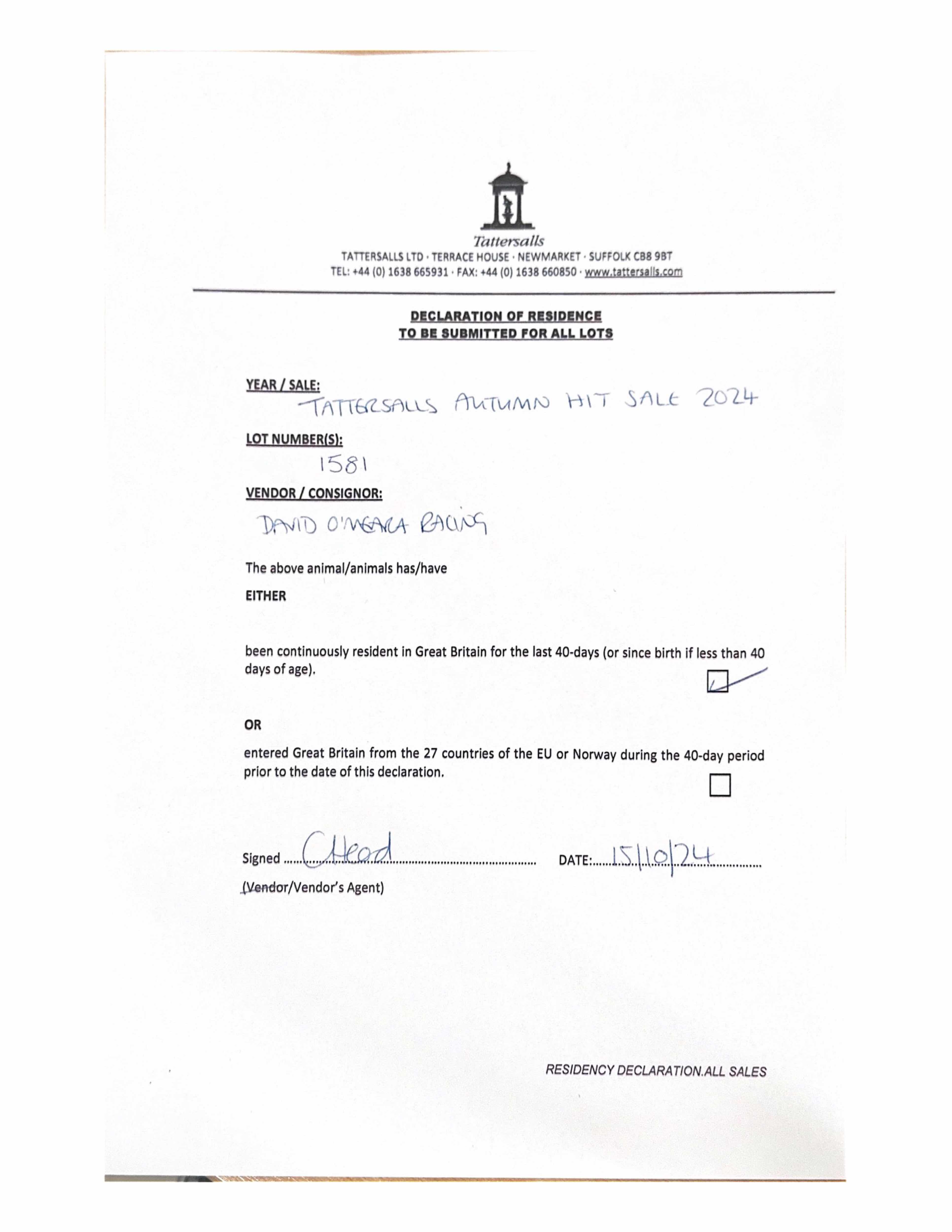 Consignor: Baroda Stud, Ireland
