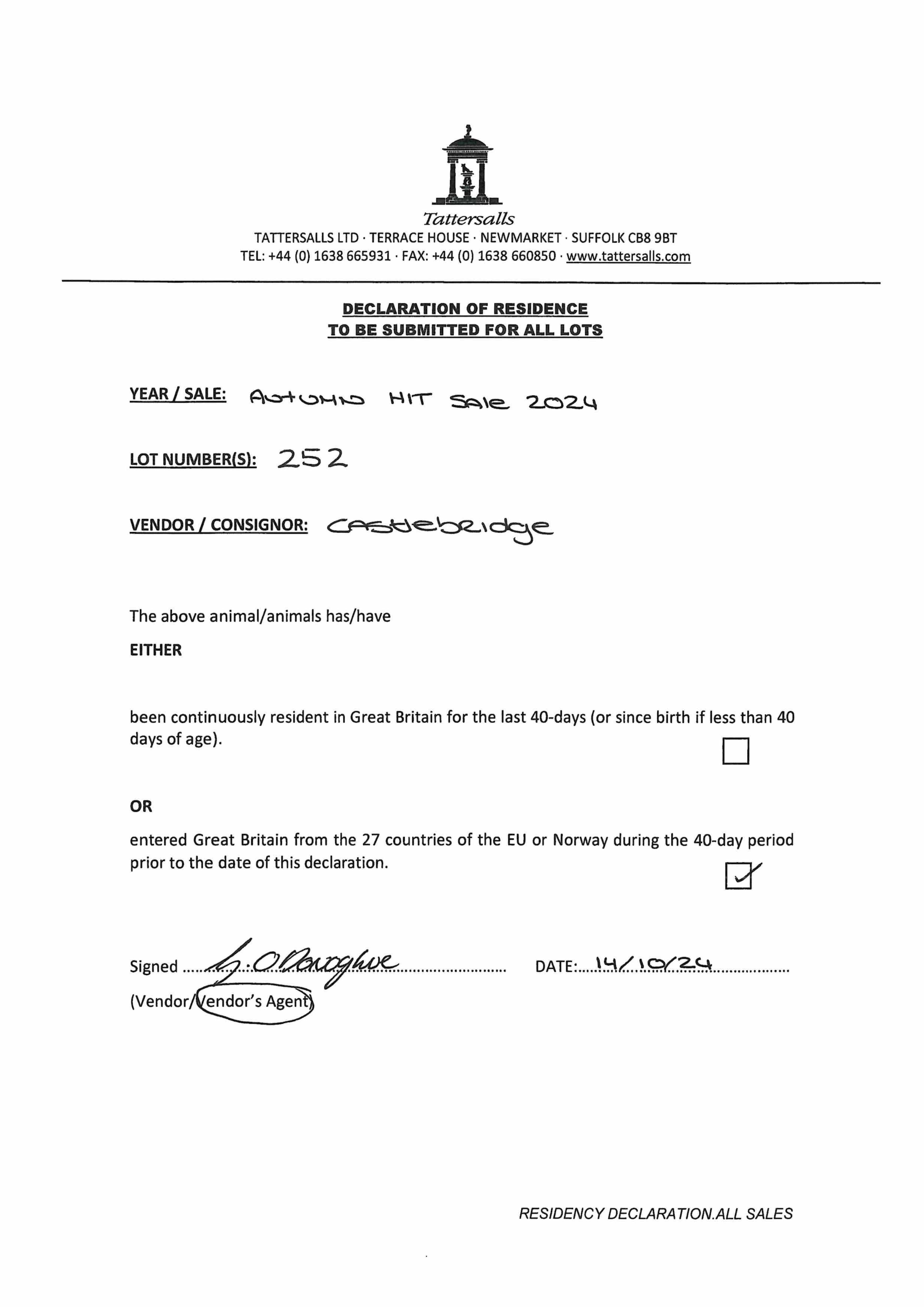Consignor: The Castlebridge Consignment