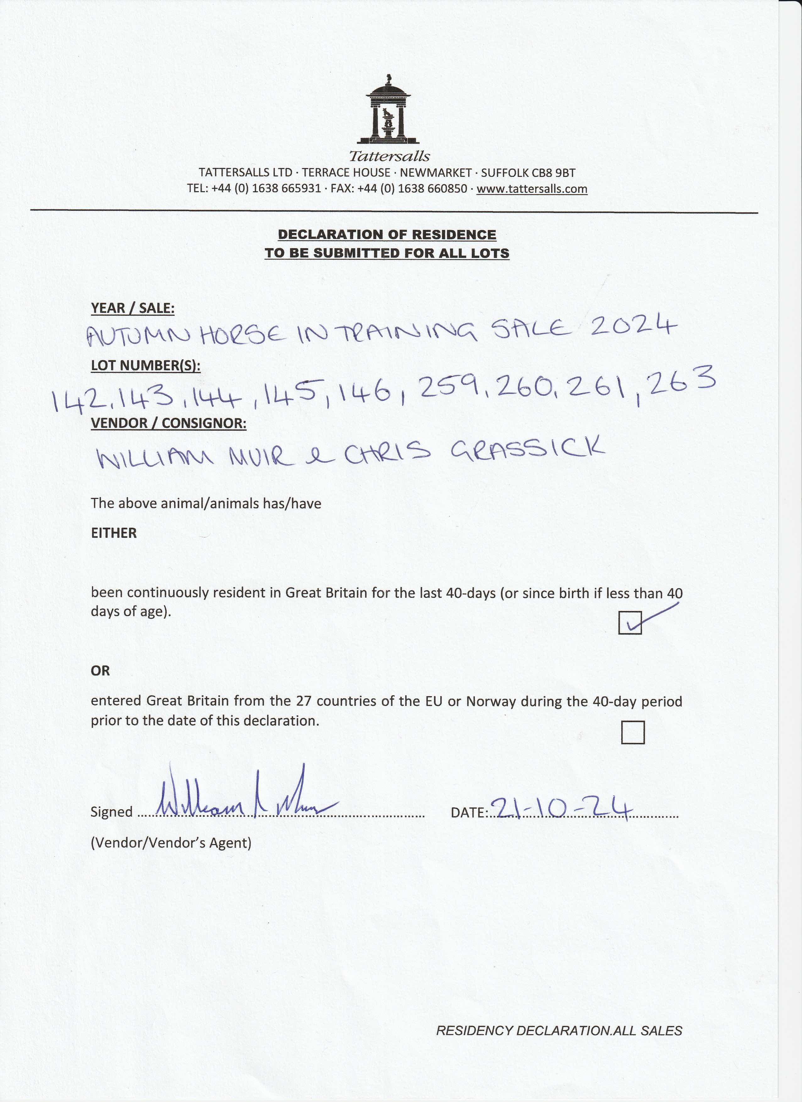 Consignor: Linkslade Stables (W. Muir & C. Grassick)