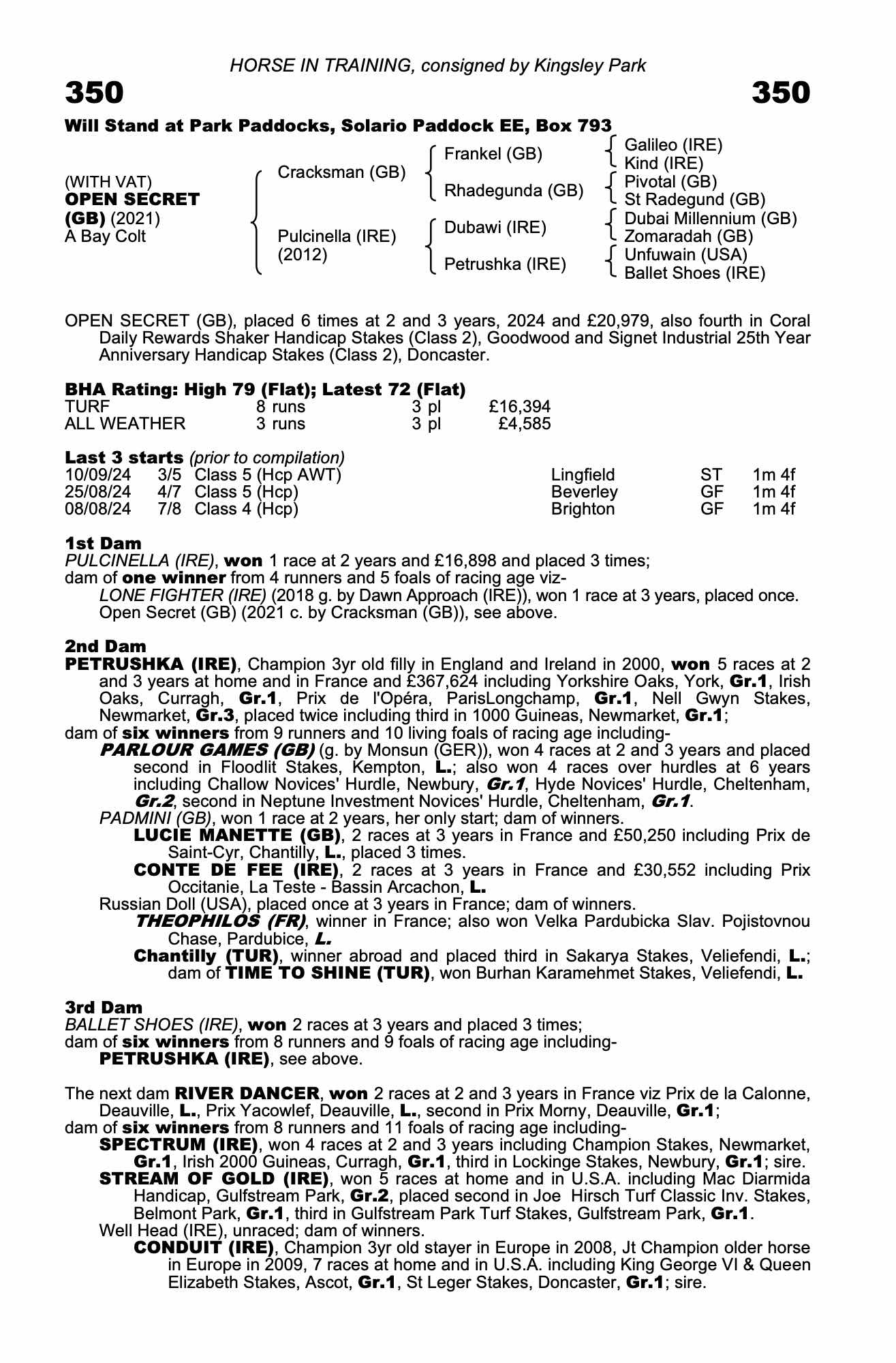 BHA Rating: High 79 (Flat); Latest 78 (Flat)