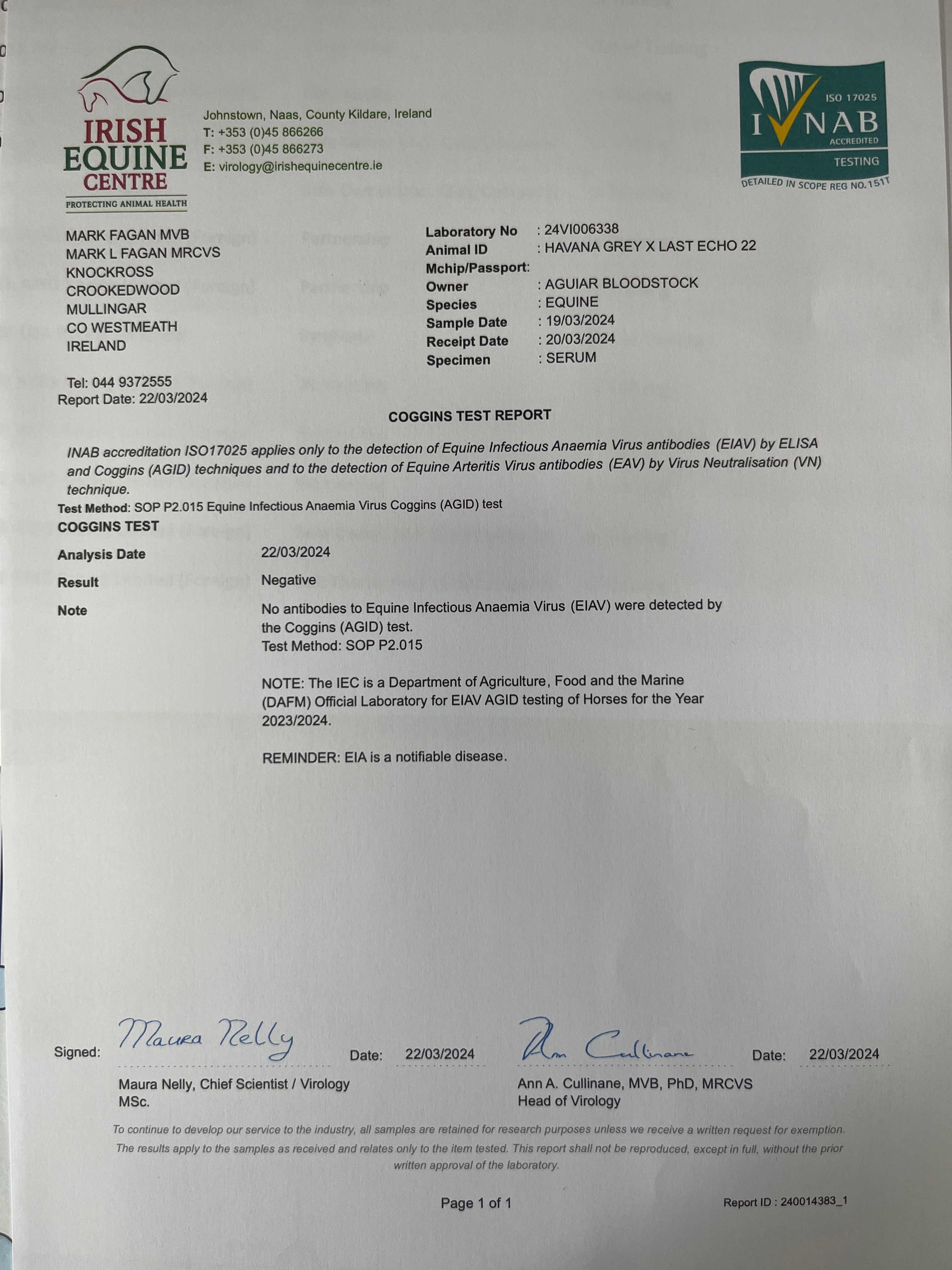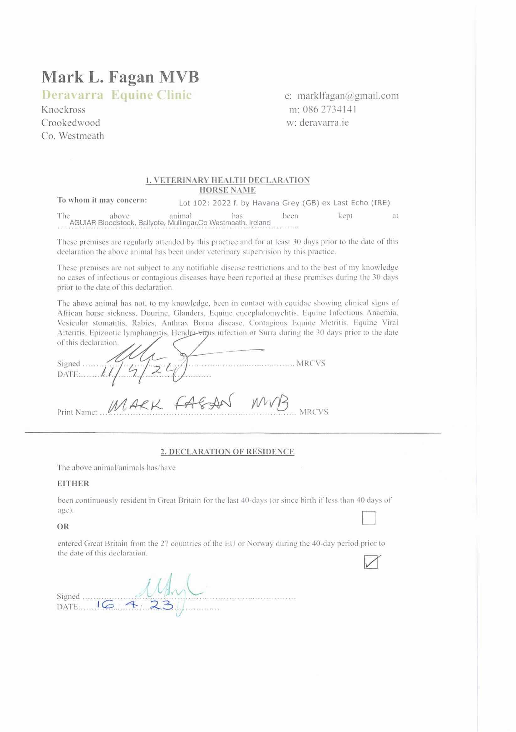 Consignor: Aguiar Bloodstock Ltd., Ireland