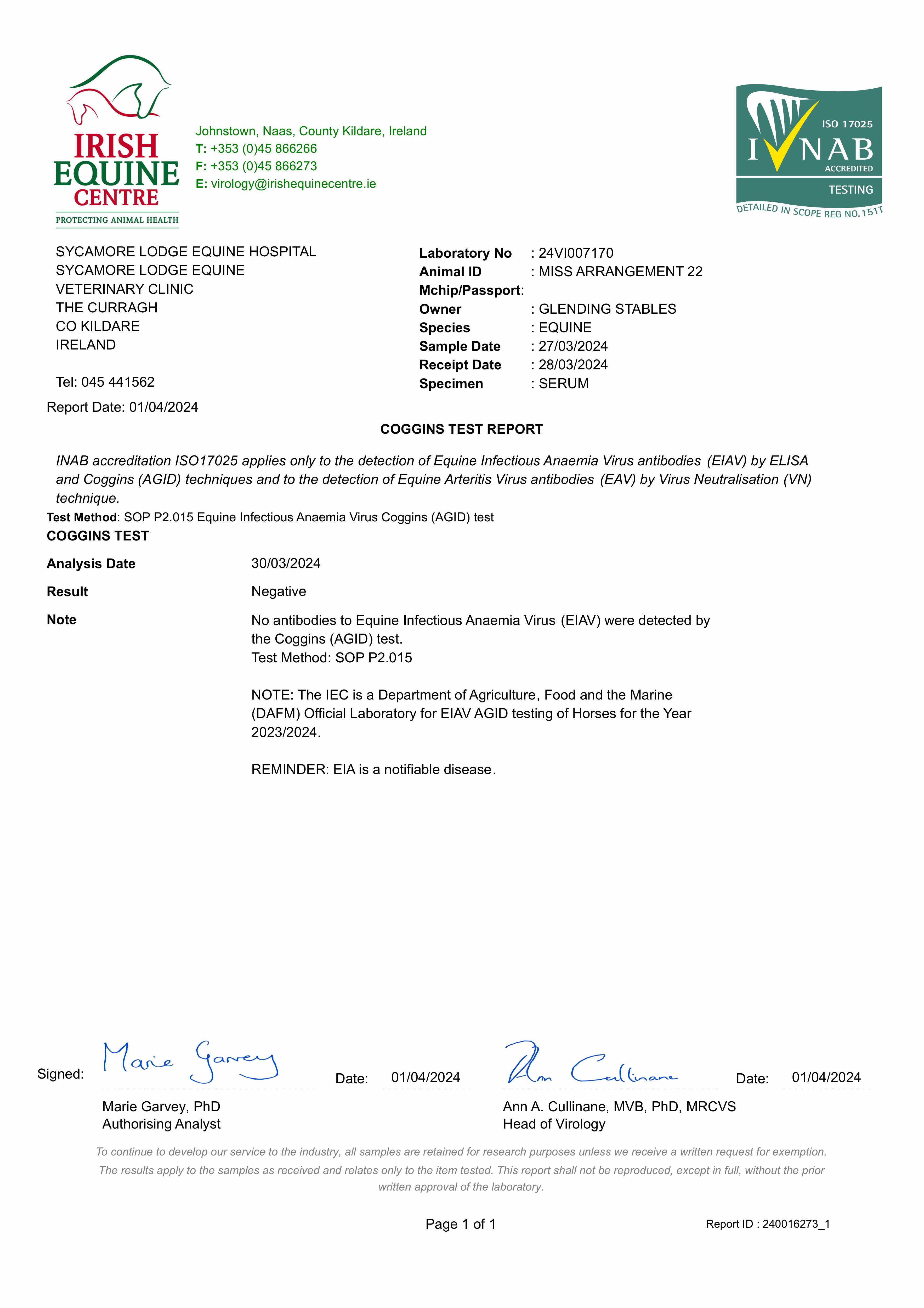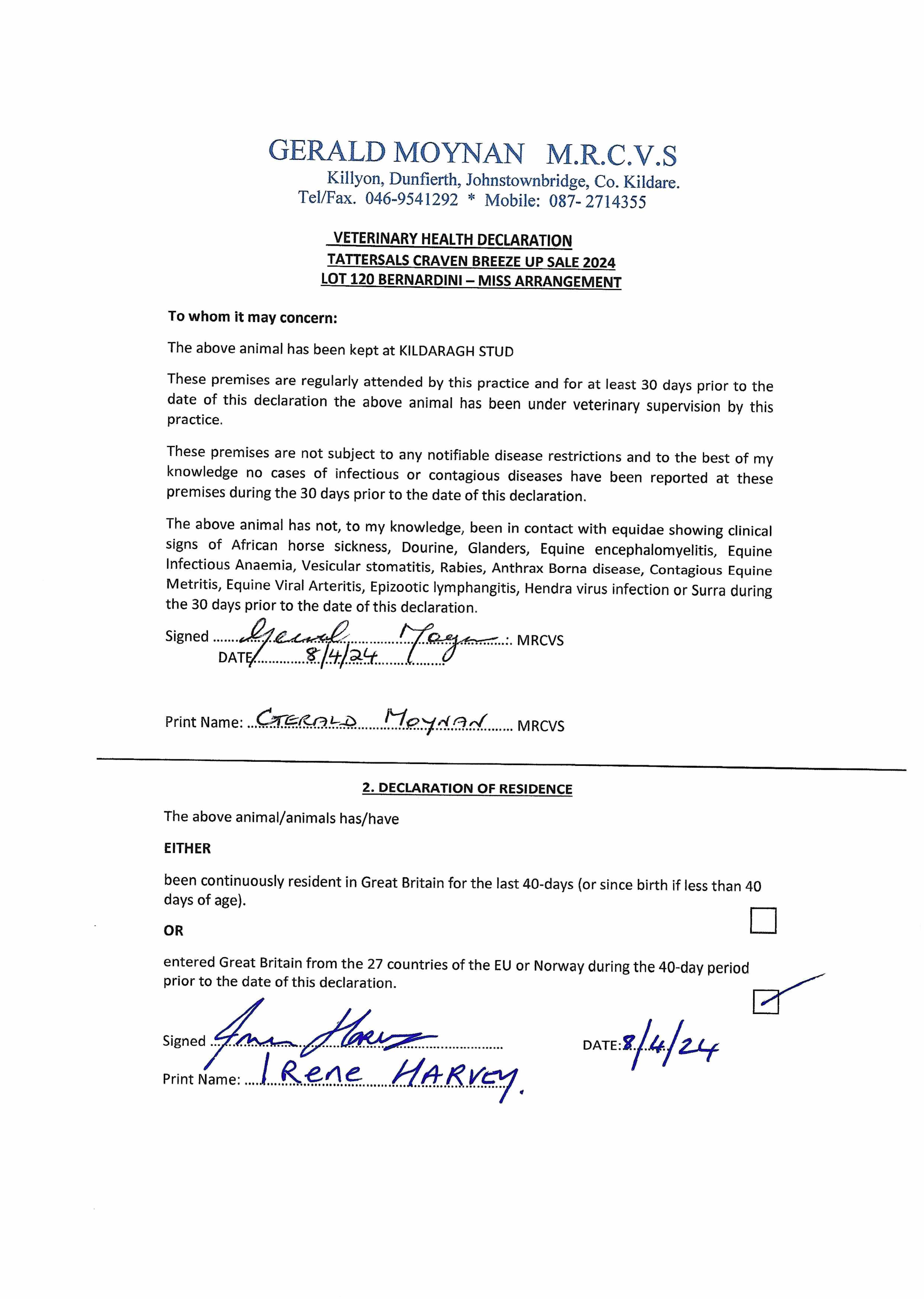 Lot 120 Bernardini (USA) /Miss Arrangement (USA) B.F. (USA)