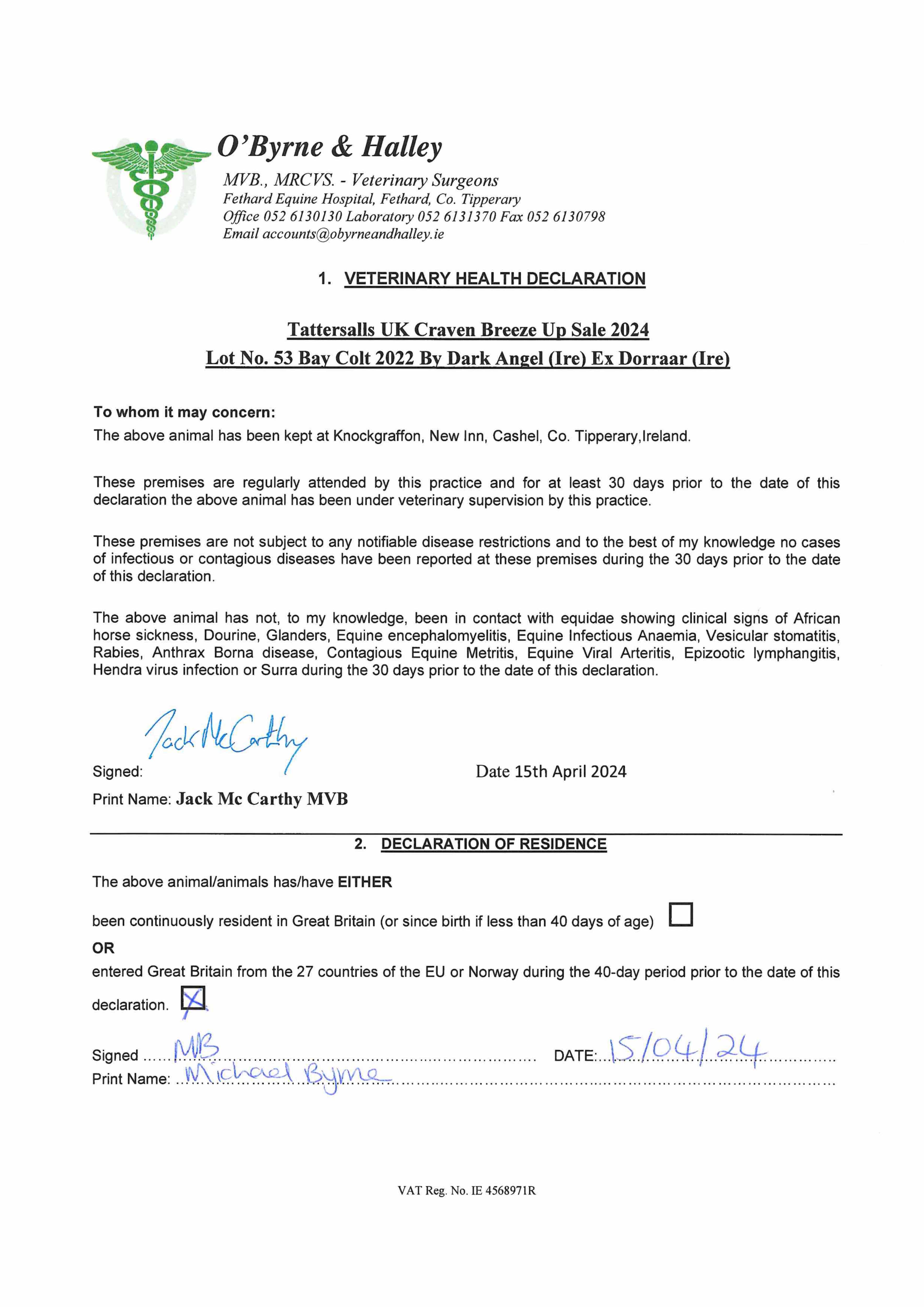 Online Sale - 18th January 2024 lot 93 A Breeding Right to Far Above (IRE) (H. by Farhh (GB)), a Gentleman=>Vendor 11,500 gns