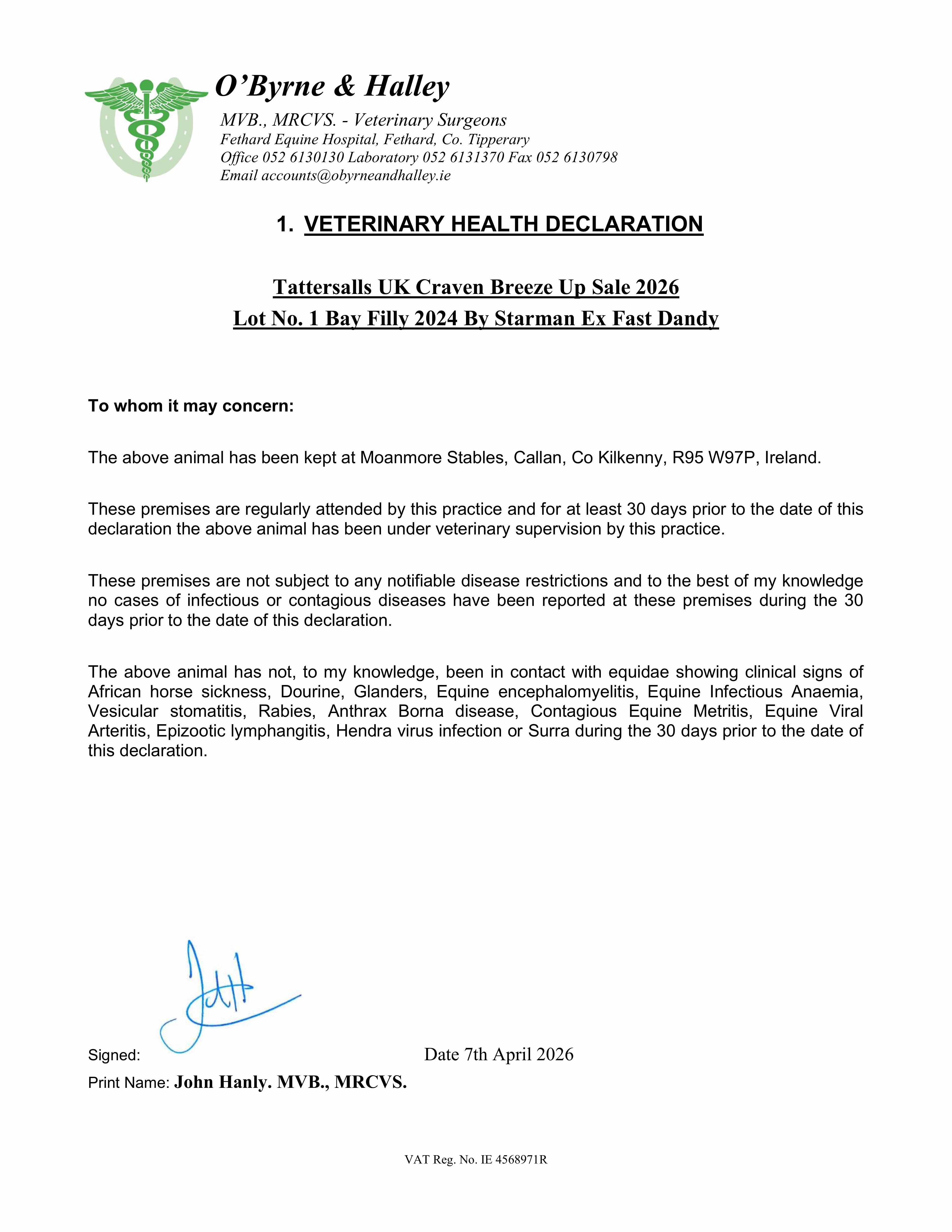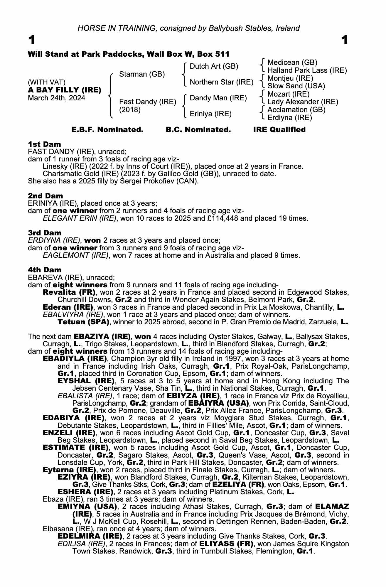 Somerville Yearling Sale 2024 lot 134 F. by Galileo Gold (GB) 2023, Kilpatrick Farm, Ireland=>Lot Not Sold 9,000 gns