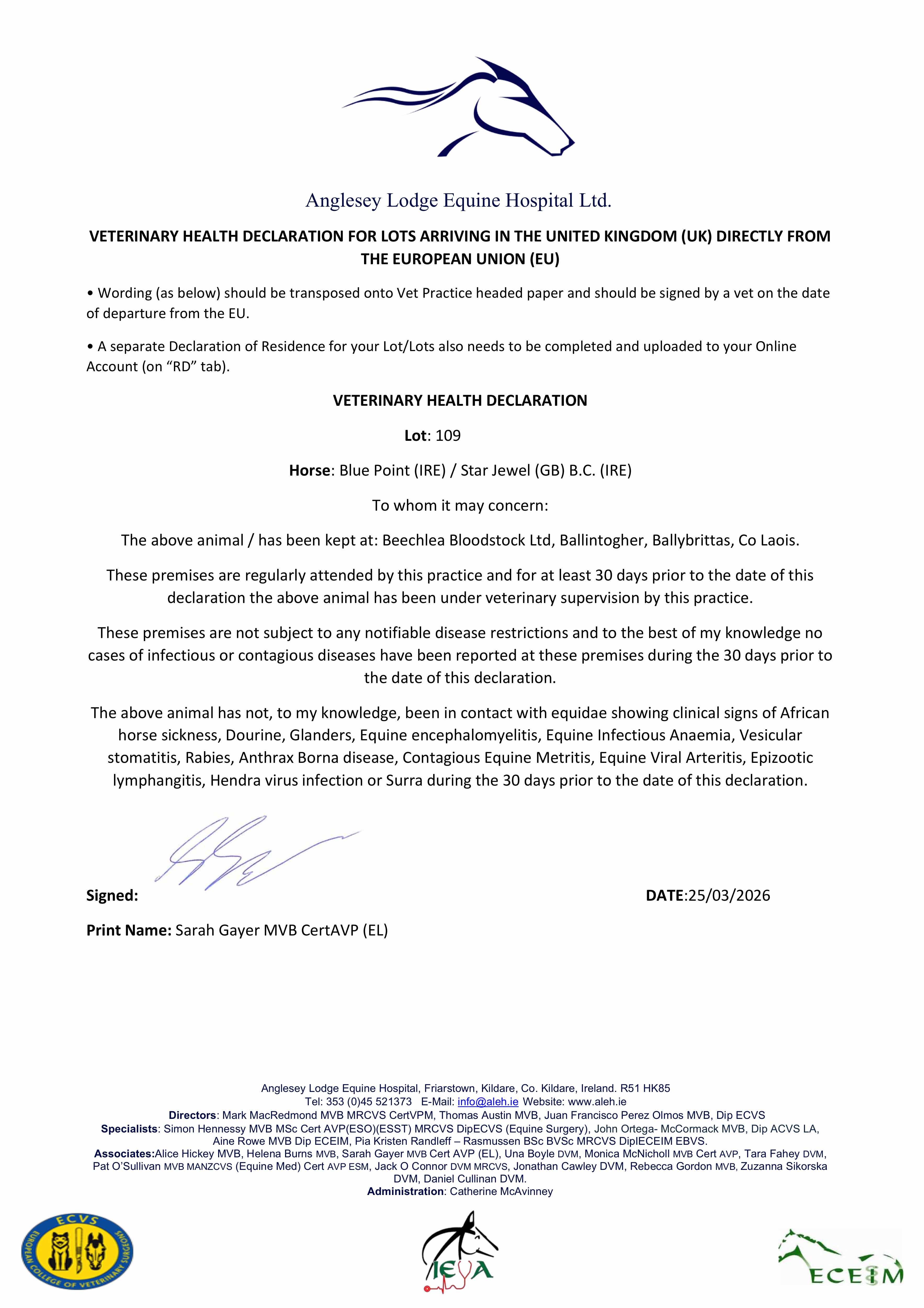 Consignor: Beechlea Bloodstock Ltd., Ireland