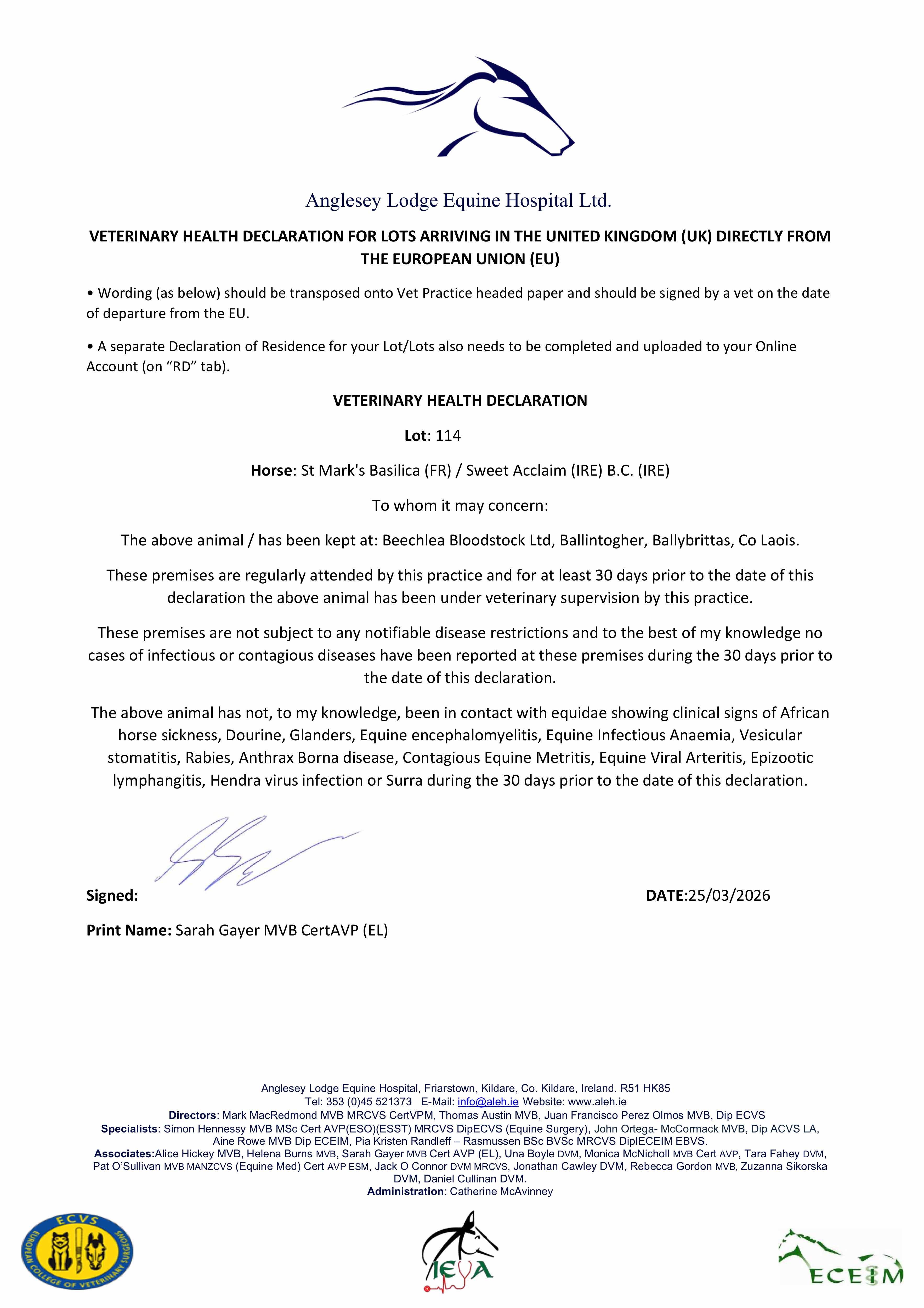 Consignor: Beechlea Bloodstock Ltd., Ireland