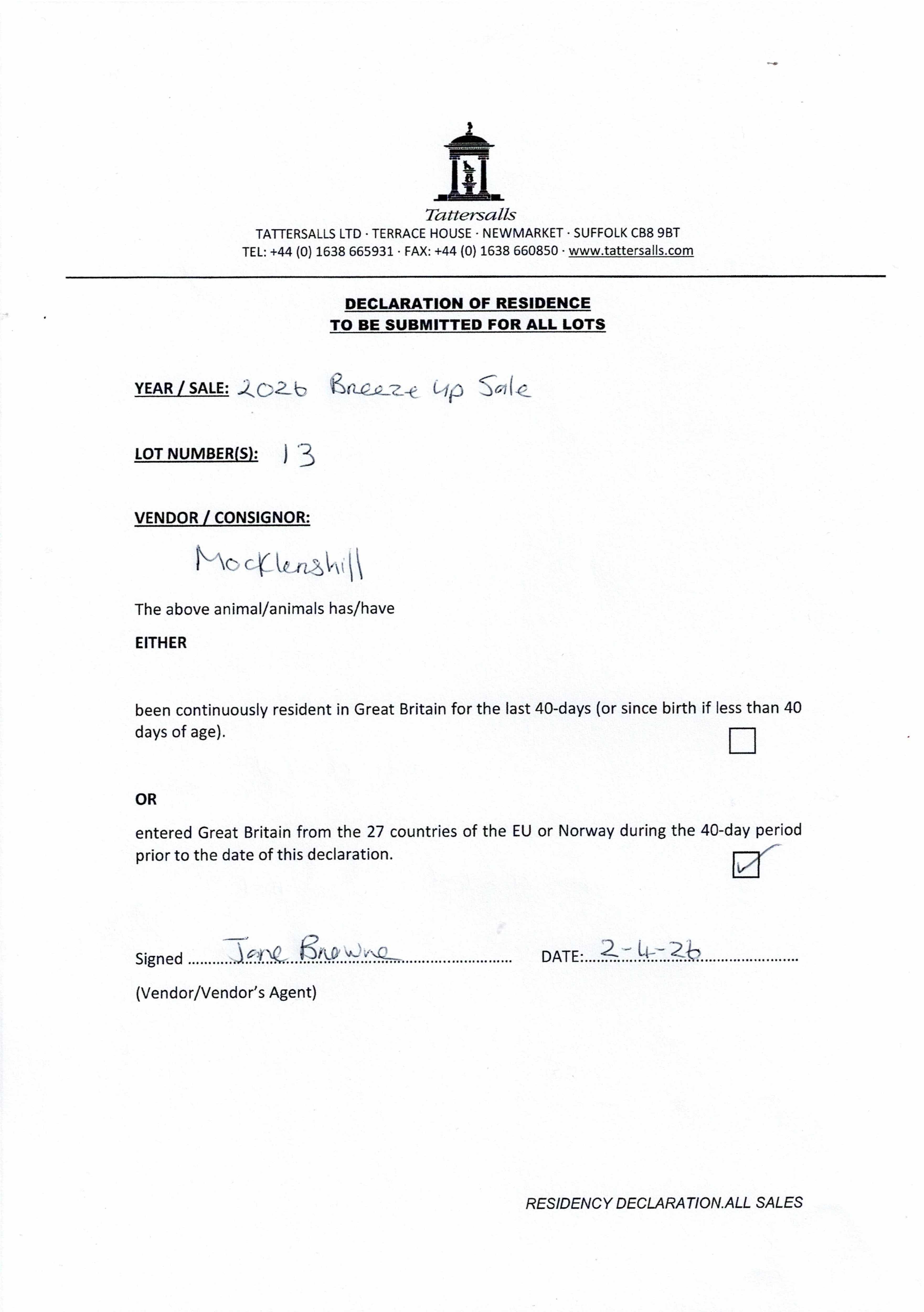 Residency Declaration