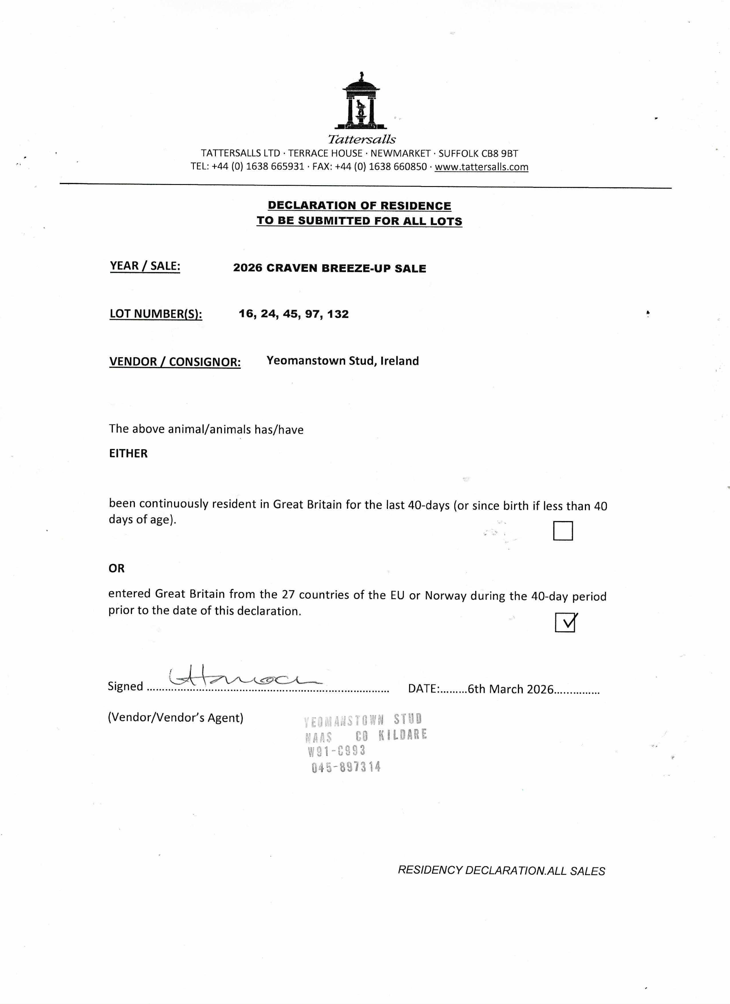 October Yearling Sale, Book 1 2025 lot 536, Yeomanstown Stud, Ireland=>Vendor 260,000 gns