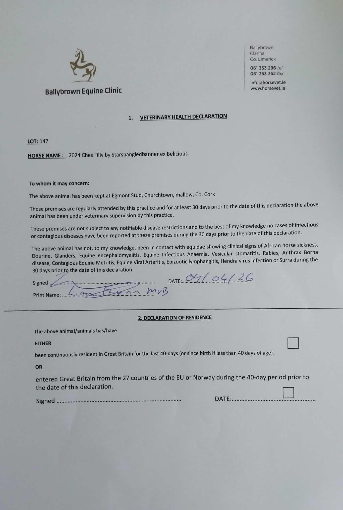 Consignor: Egmont Stud, Ireland