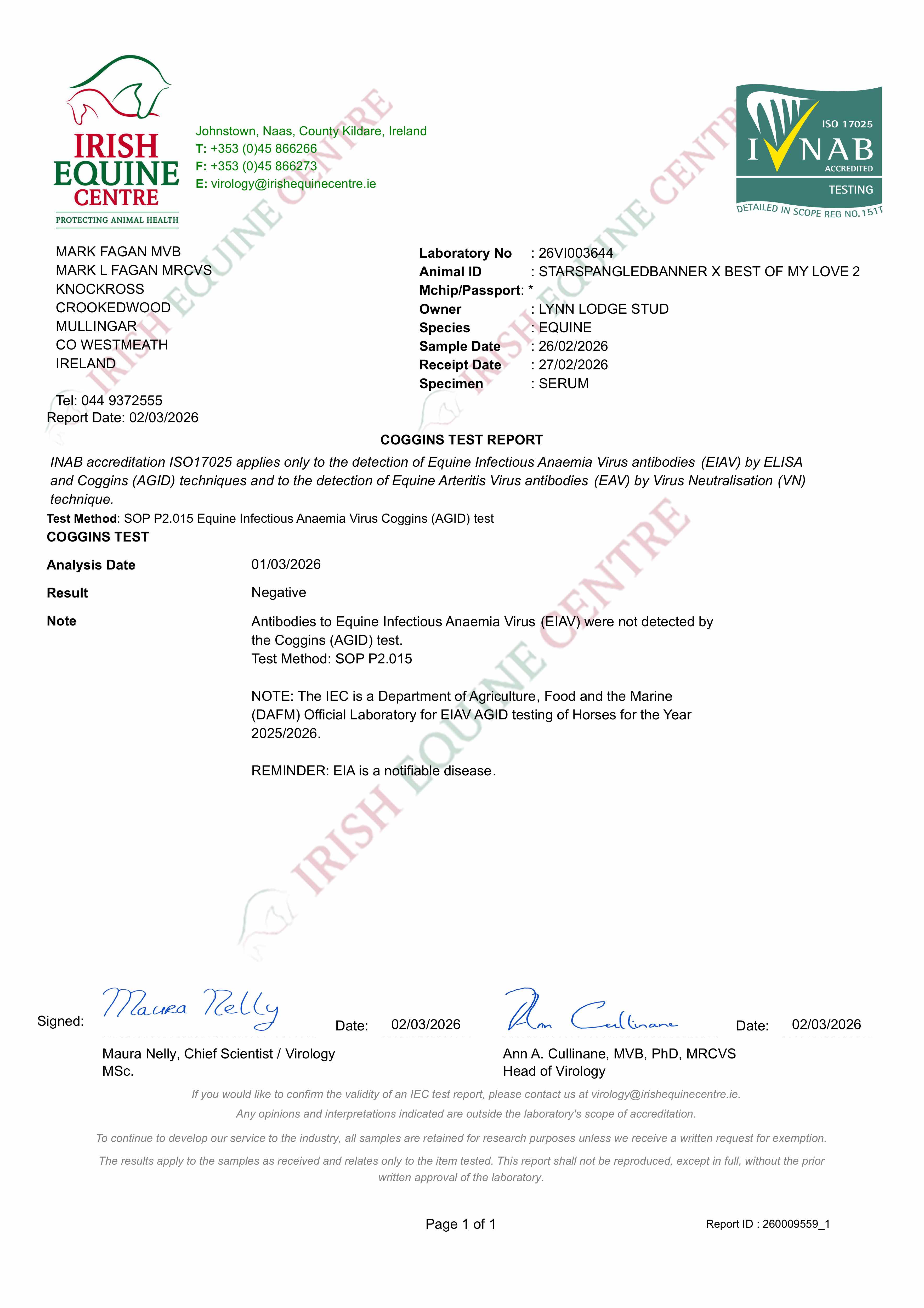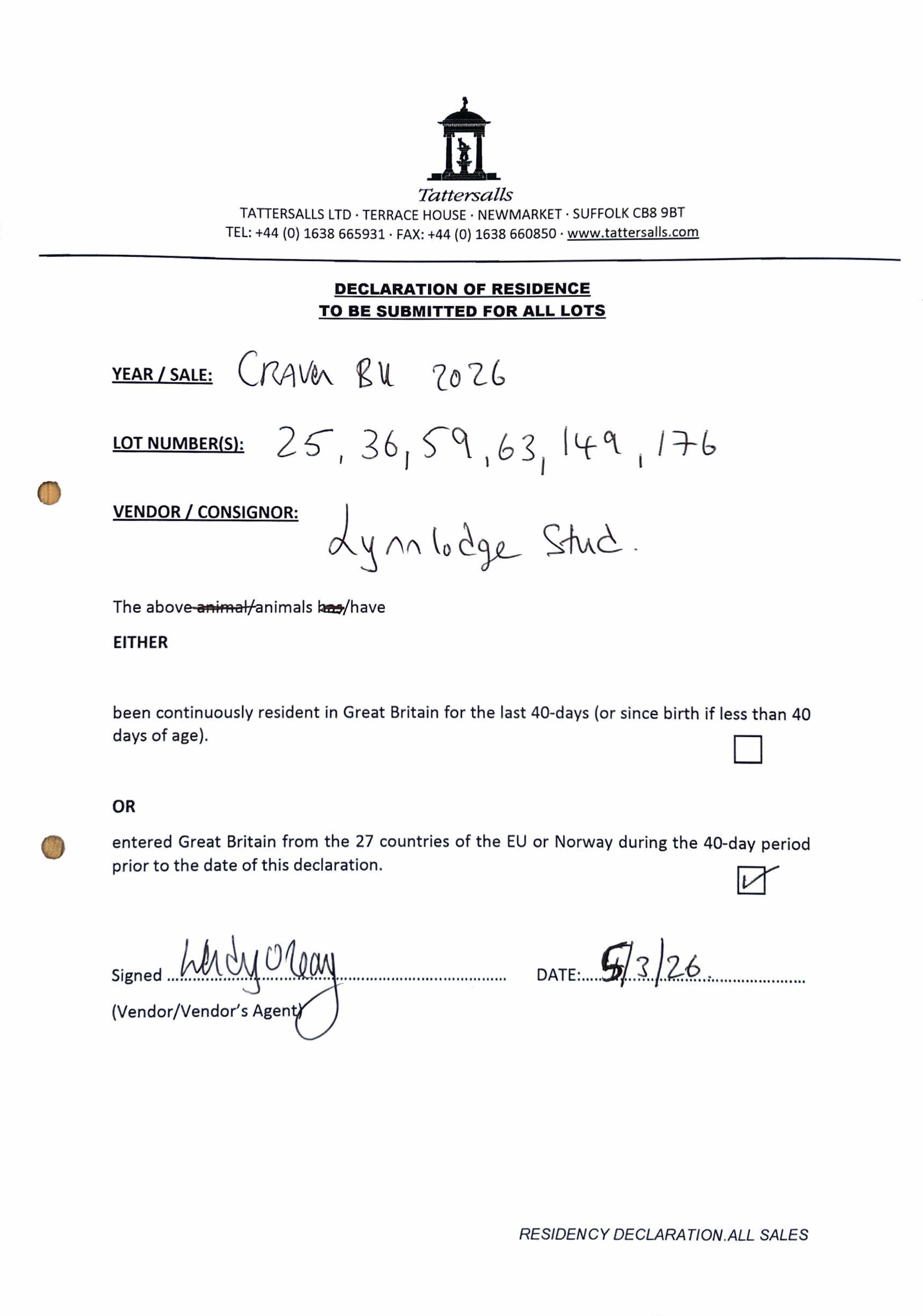 Consignor: Lynn Lodge Stud, Ireland