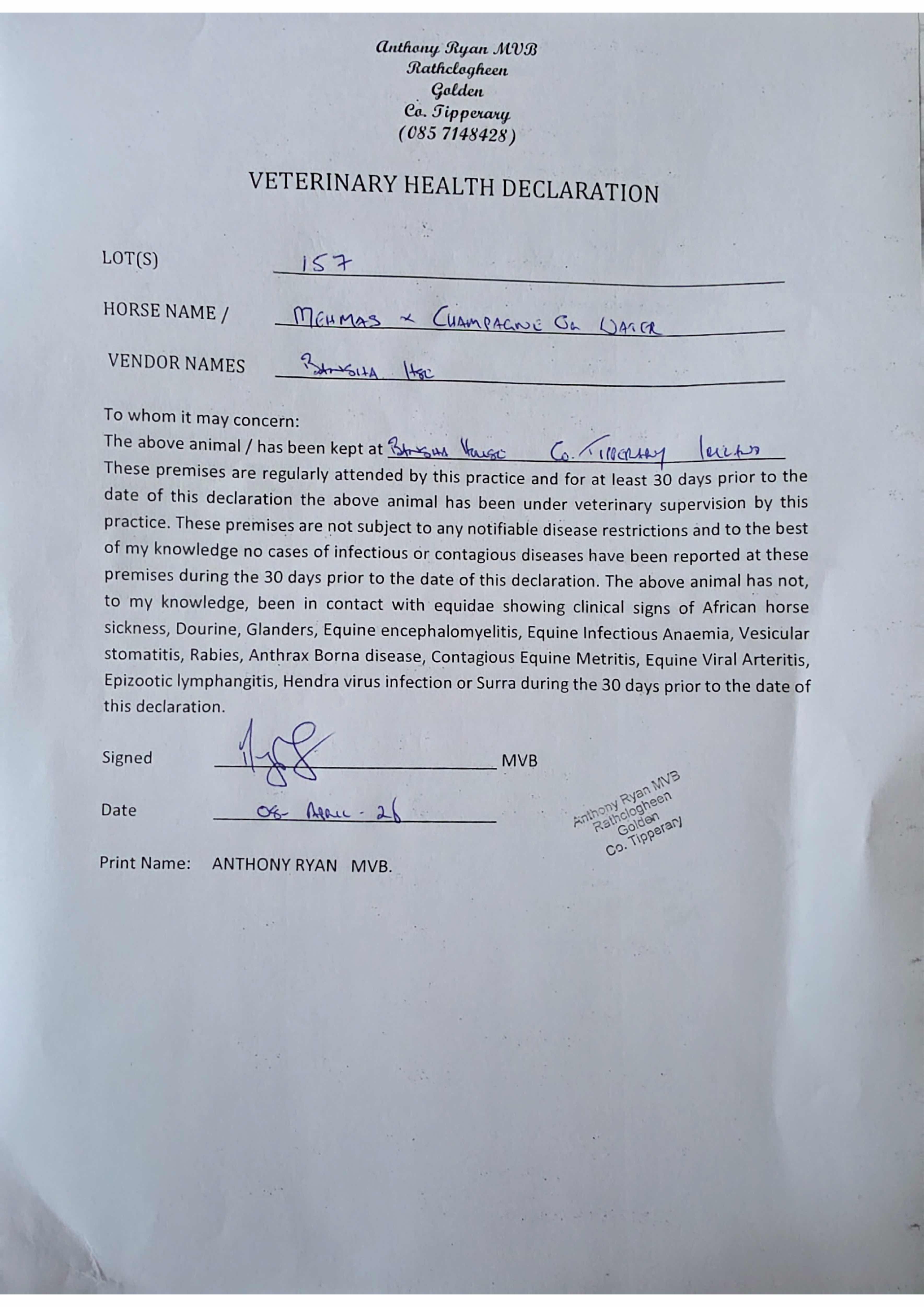 Consignor: Bansha House Stables, Ireland