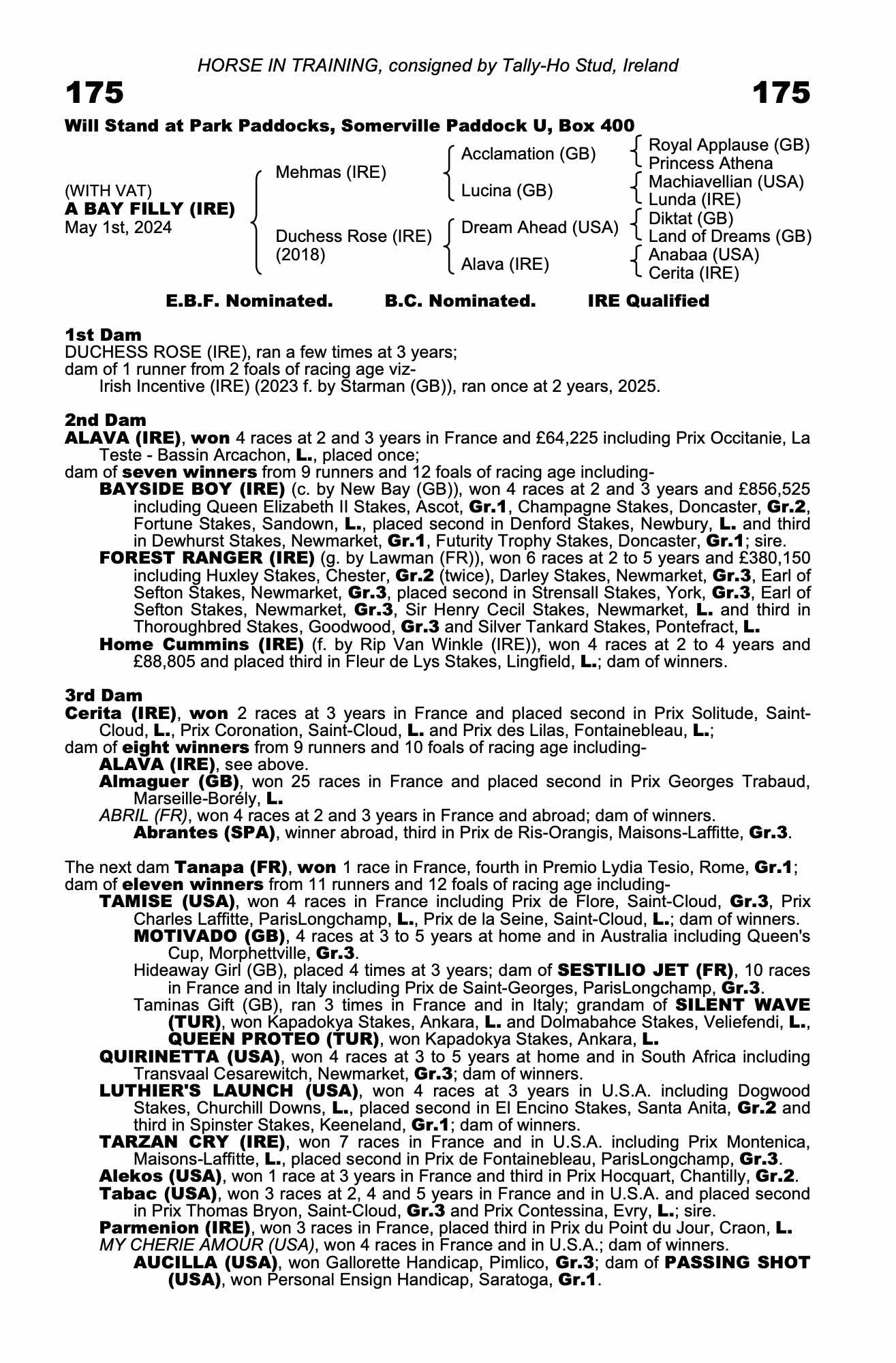 Half sister: Irish Incentive (IRE) (2023 f. by Starman (GB)), placed once at 3 years, 2026.