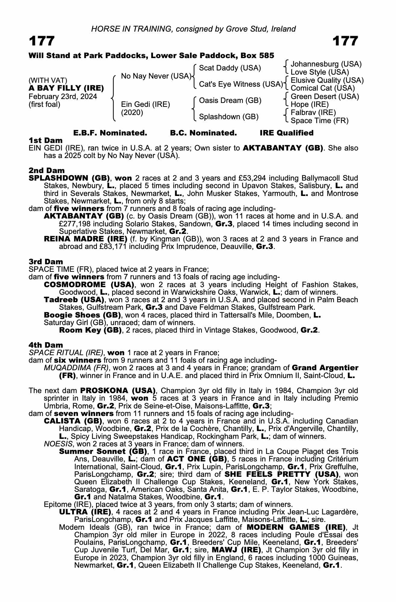 Entered in the 2027 Swedish Derby and Oaks Series, next forfeit 25th May.
