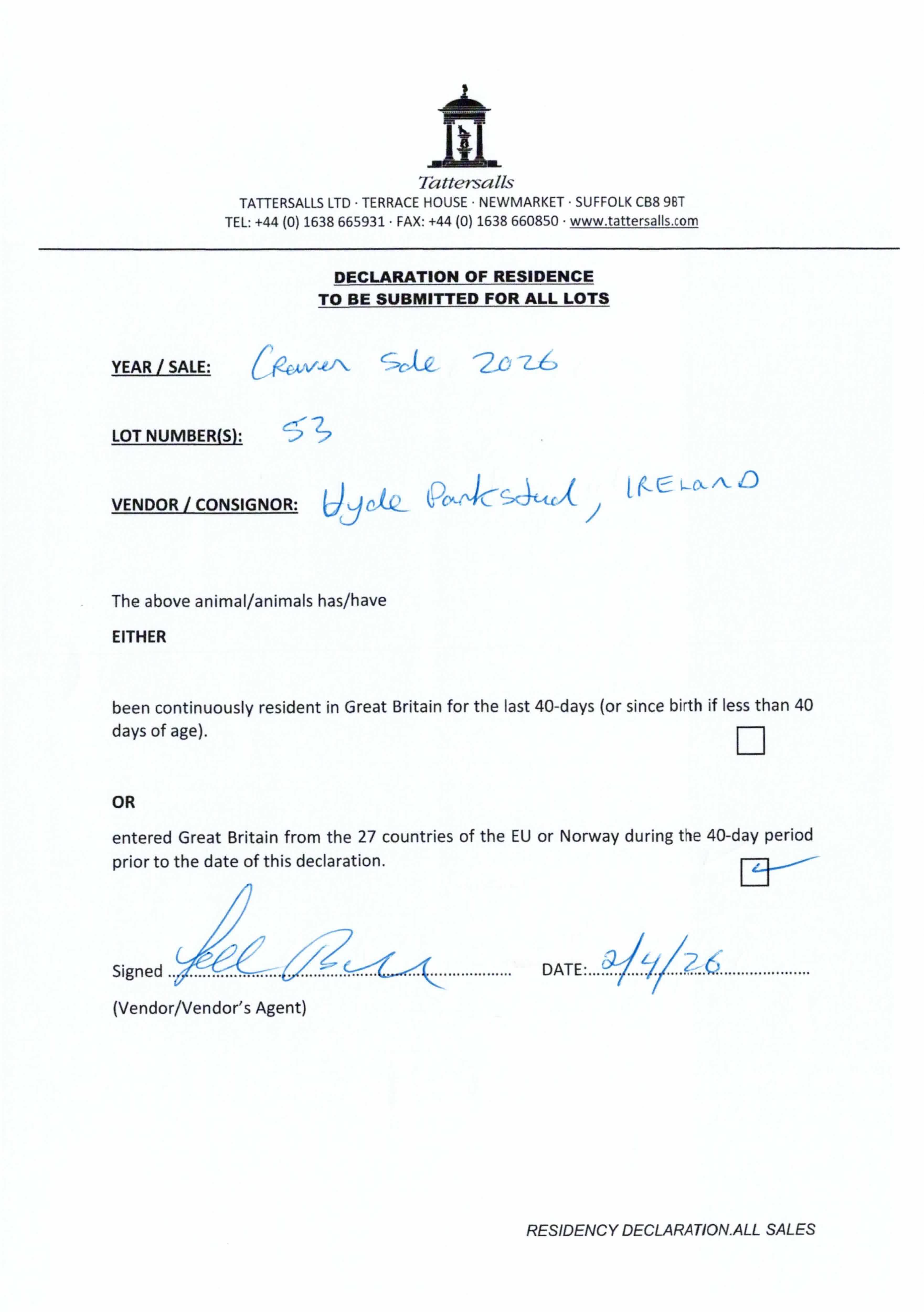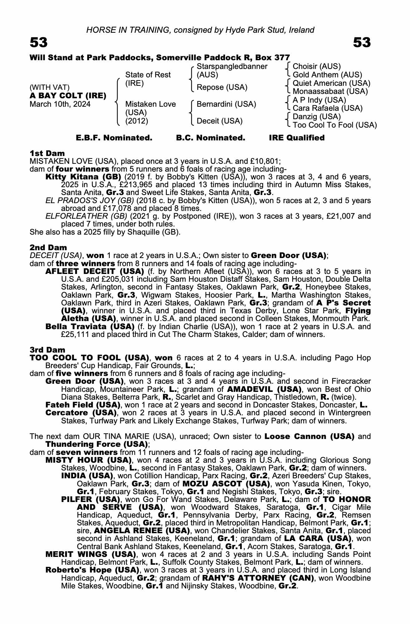 Consignor: Hyde Park Stud, Ireland