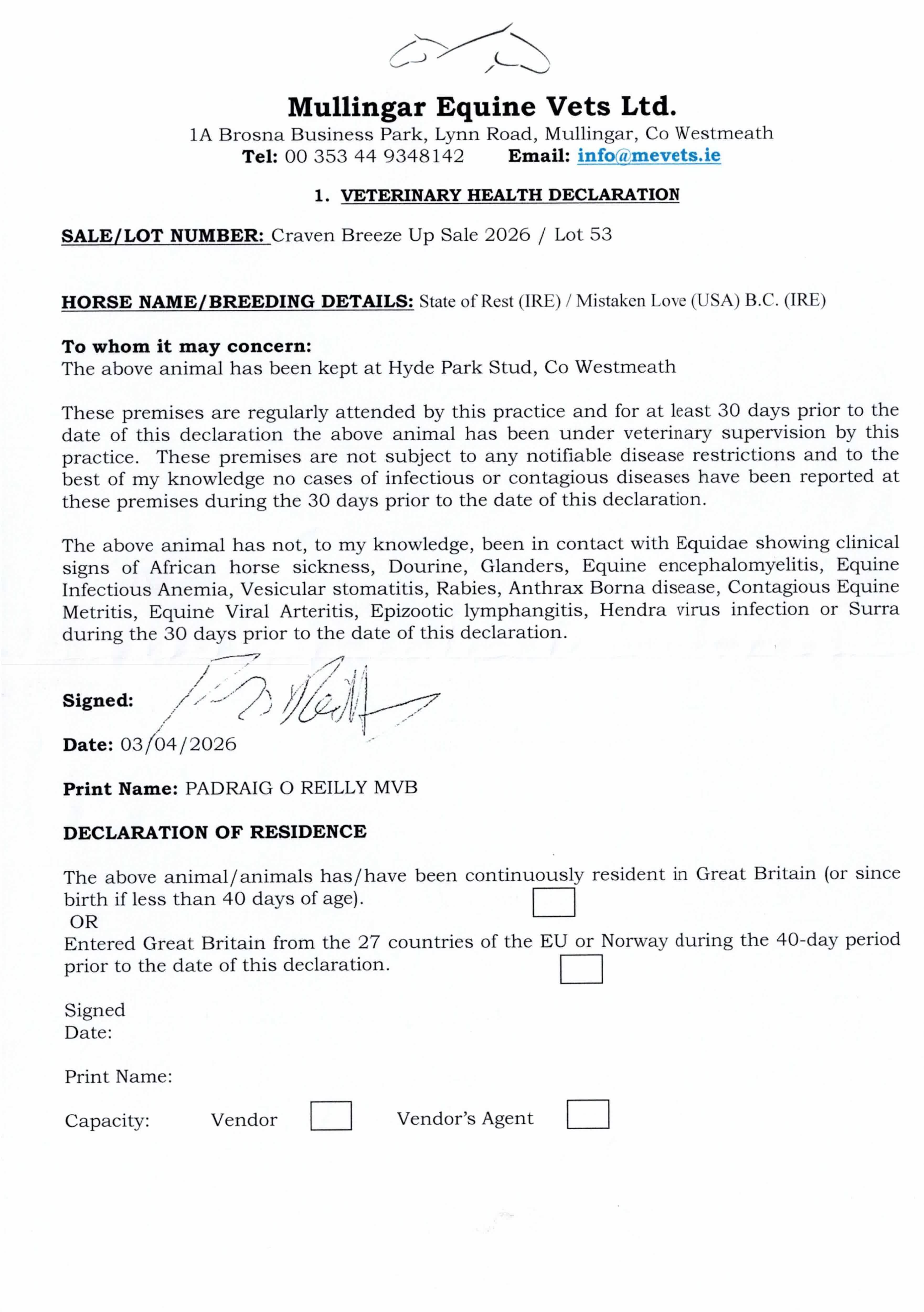 🇮🇪 Location: Hyde Park Stud, Hyde Park, Killucan, N91 DK30, Ireland