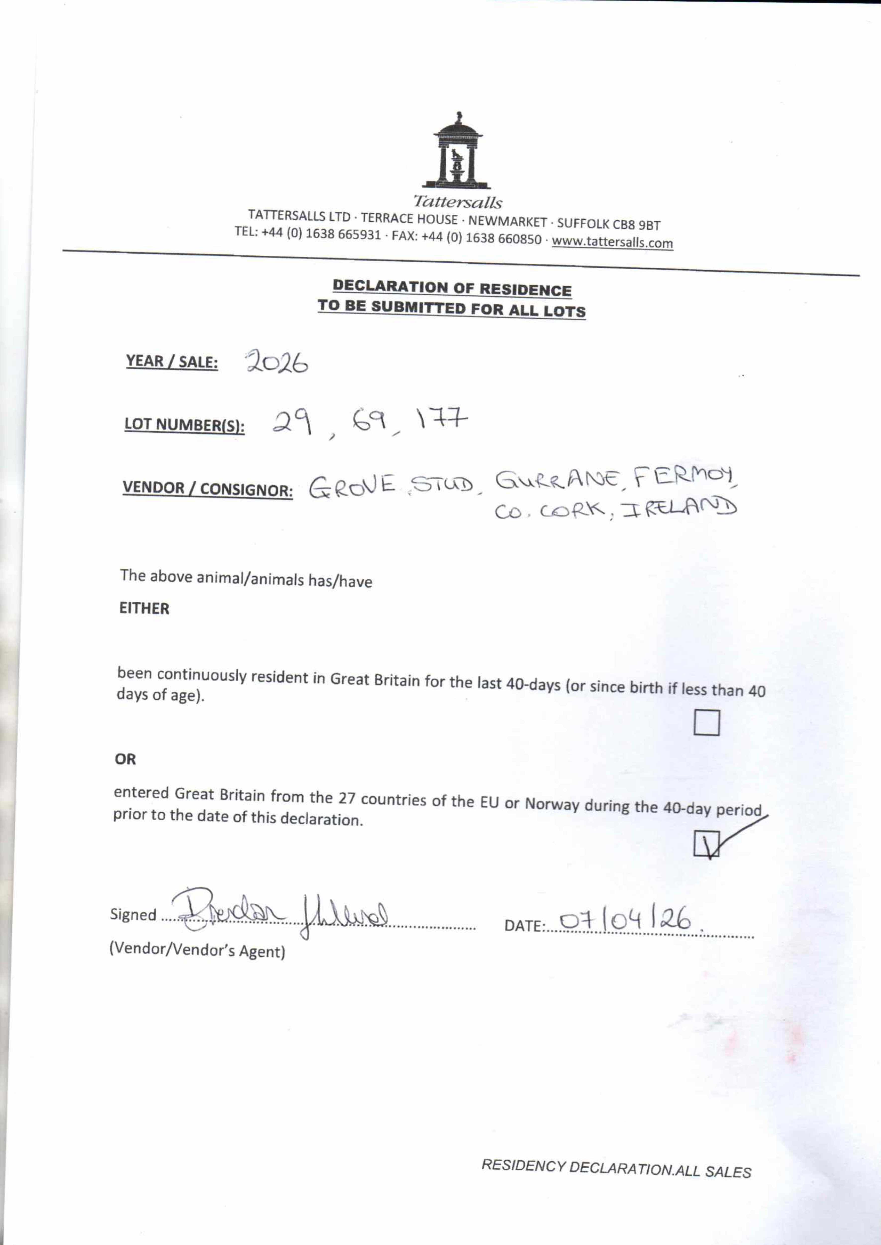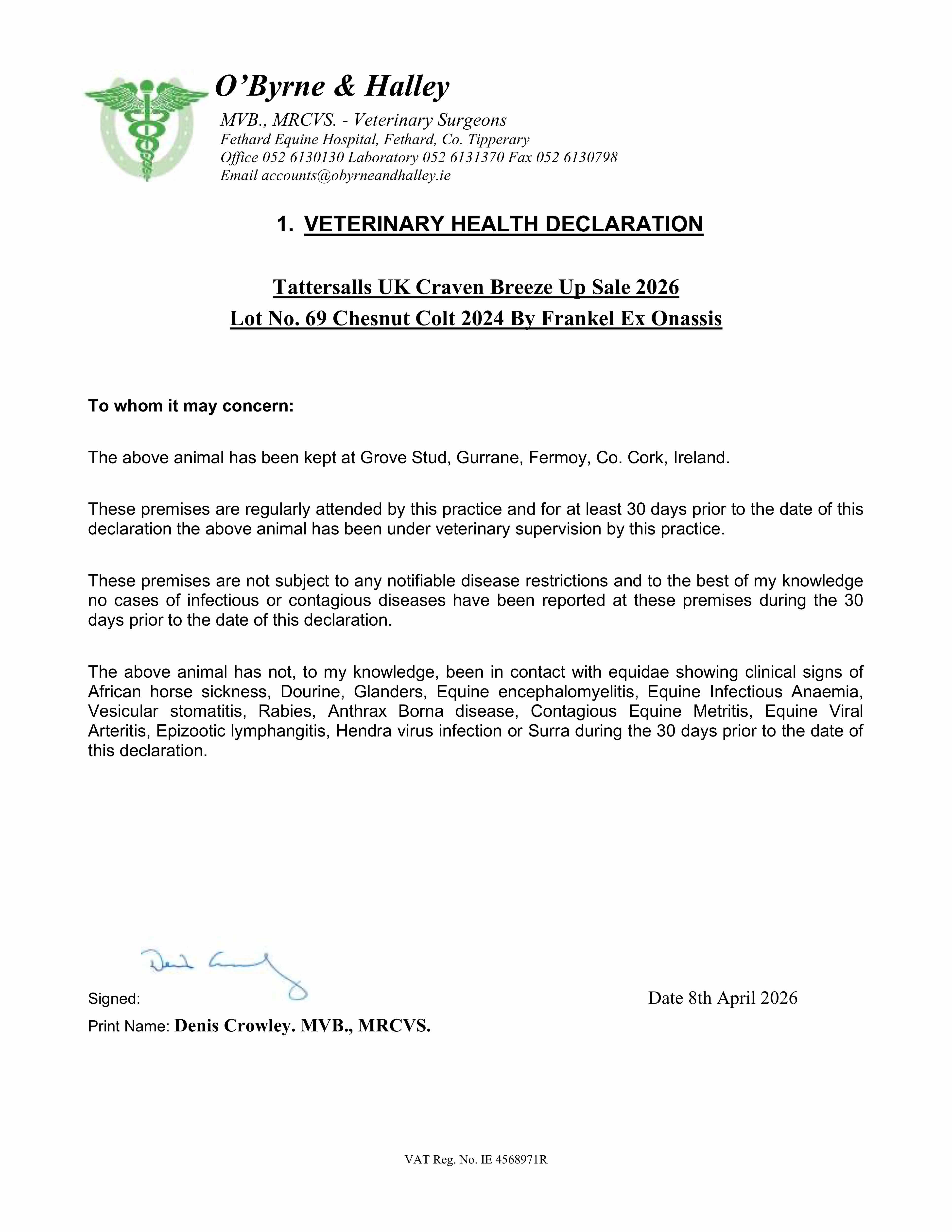 Consignor: Grove Stud, Ireland