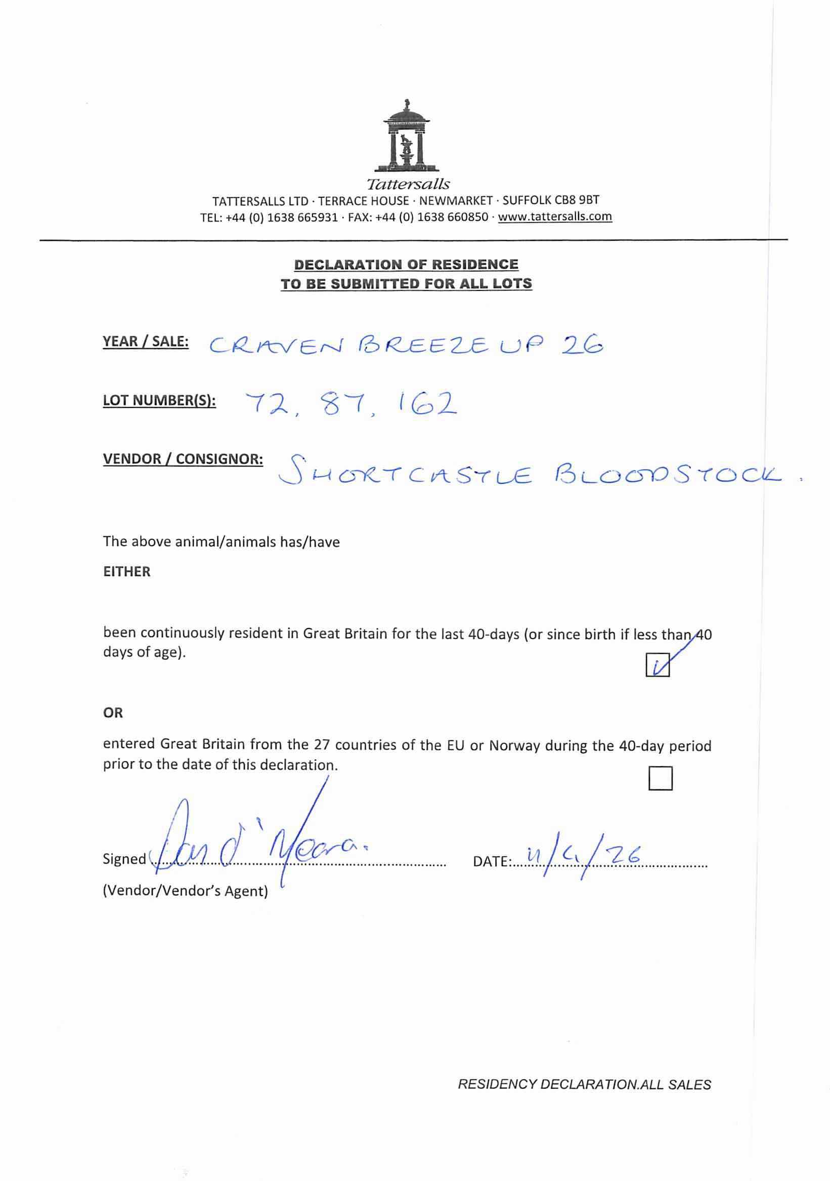 Consignor: Shortcastle Bloodstock