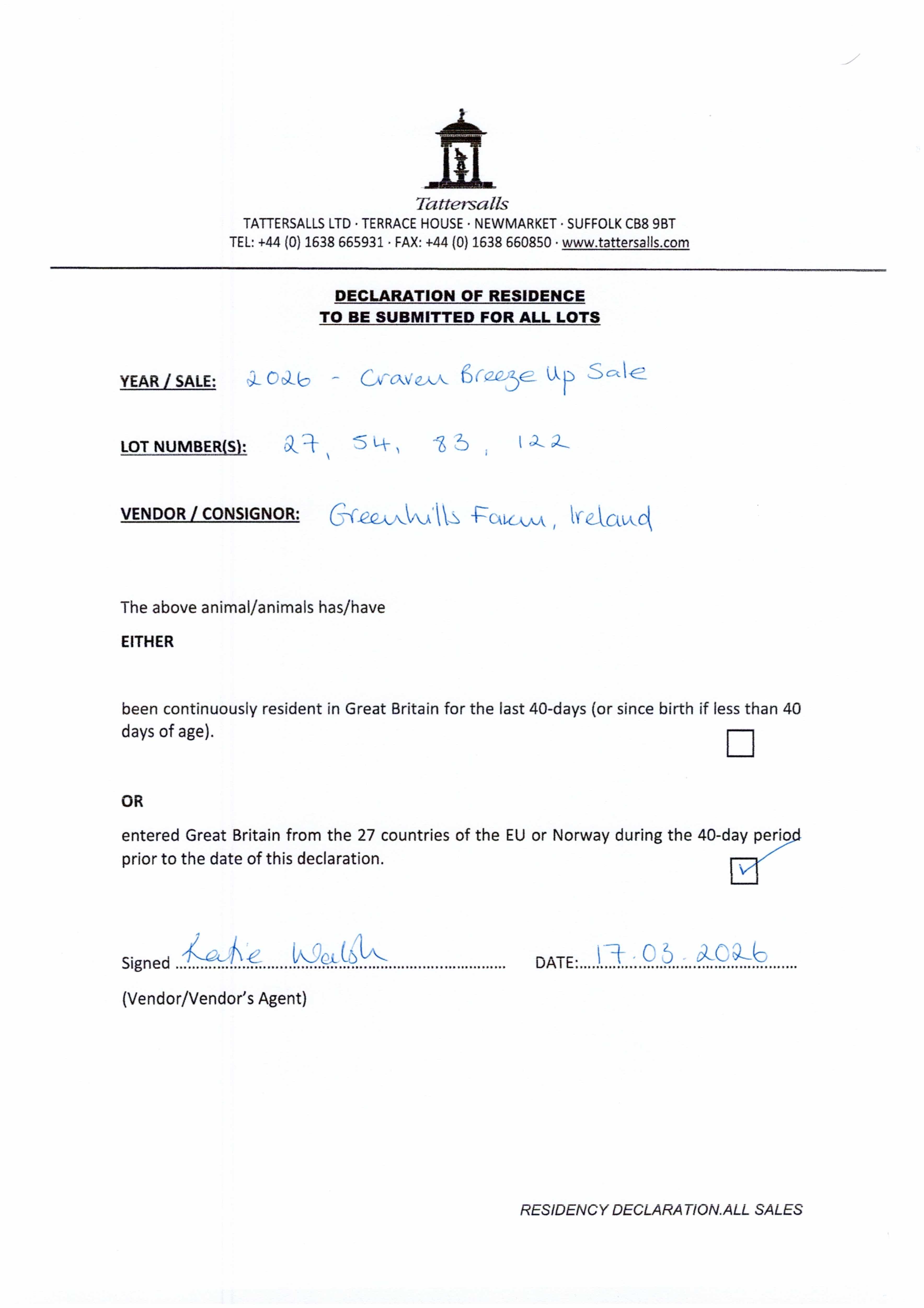 Consignor: Greenhills Farm, Ireland
