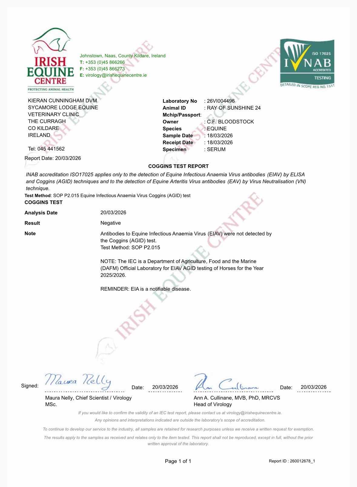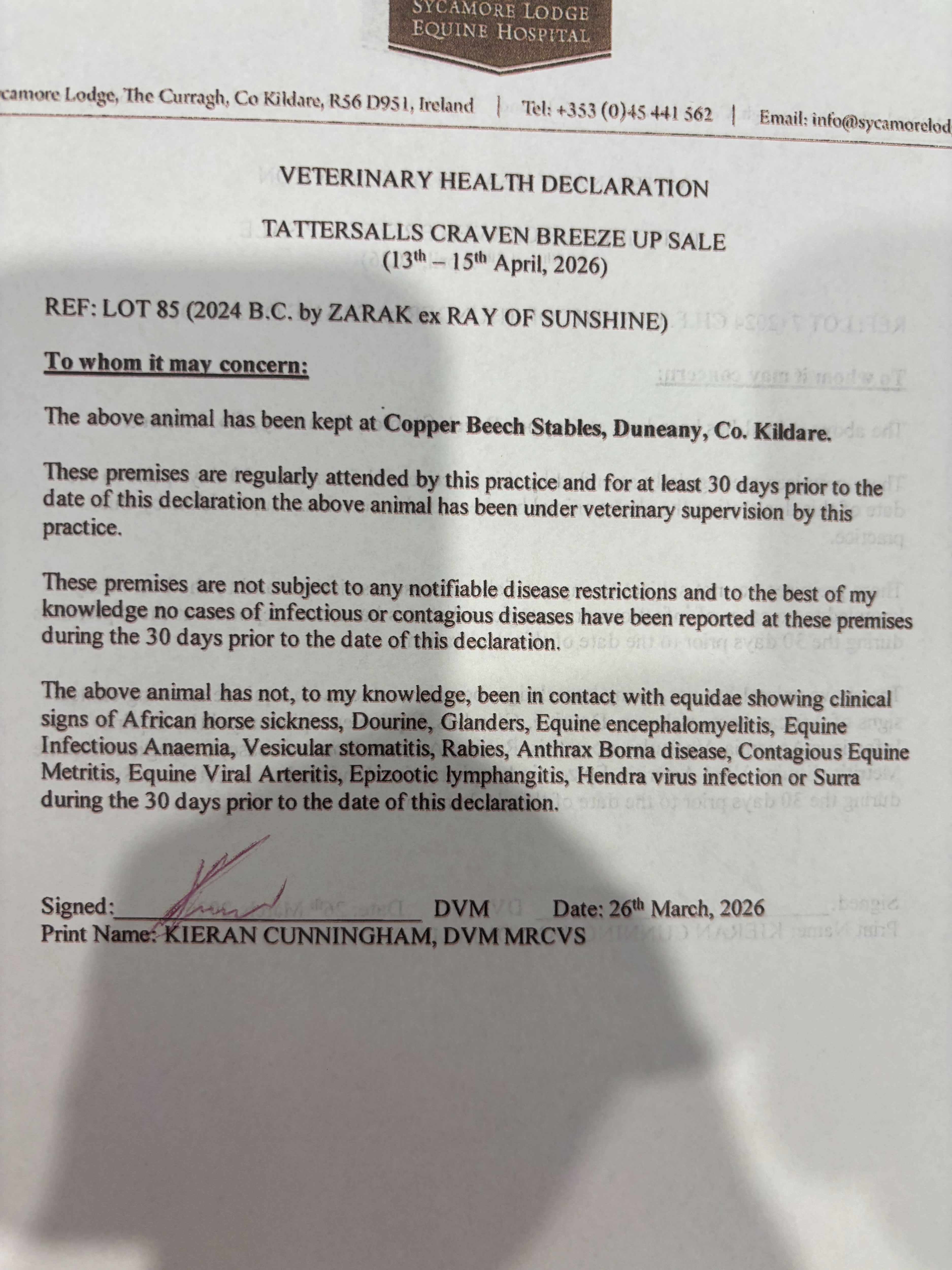 Contact: Cormac Farrell ✆ 00353838825541 ✉ Cormac.farrell@cfbloodstock.ie