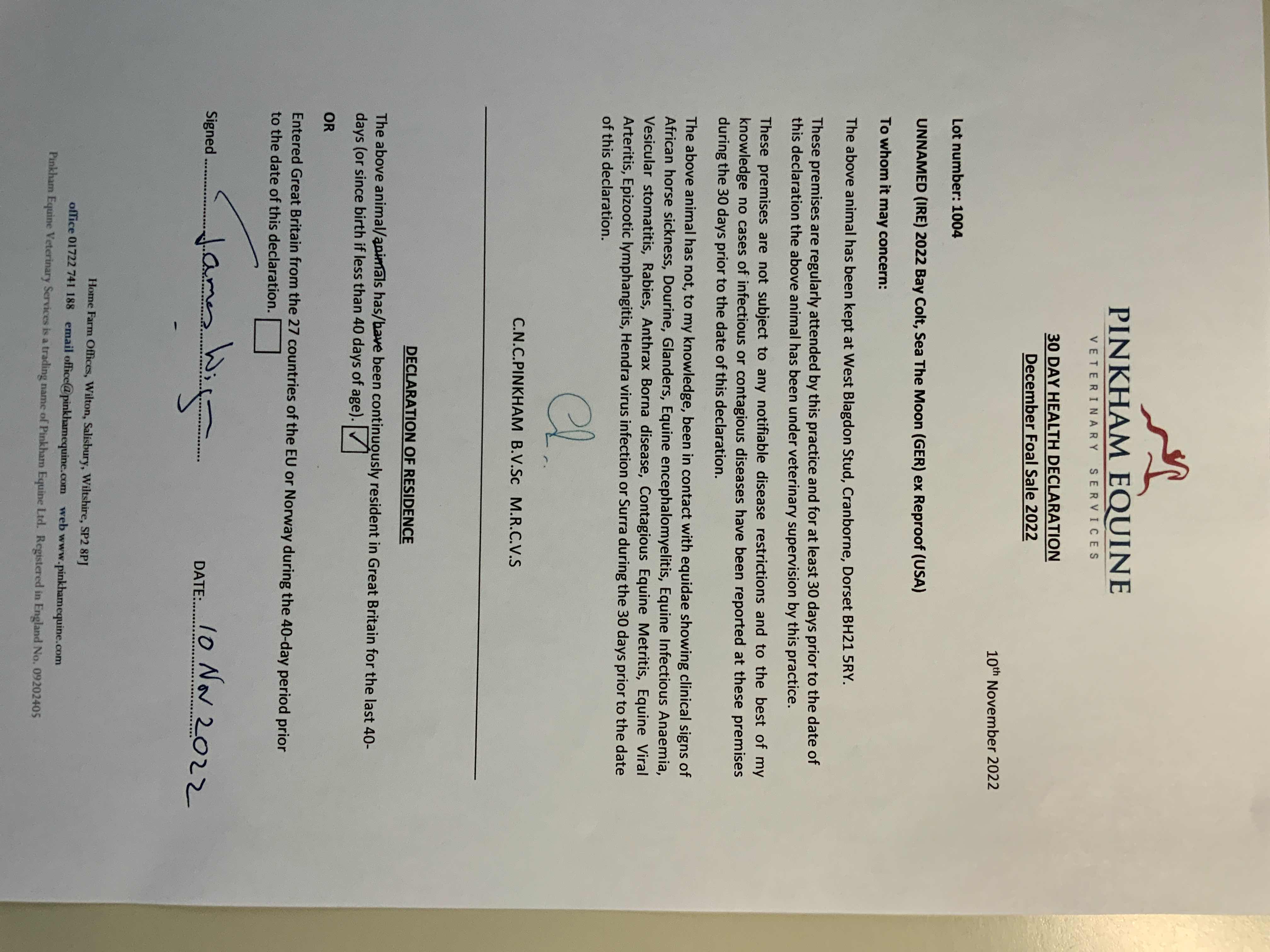 December Foal Sale 2023 lot 944 F. by Saxon Warrior (JPN) 2023, West Blagdon Stud=>Blandford Bloodstock 20,000 gns