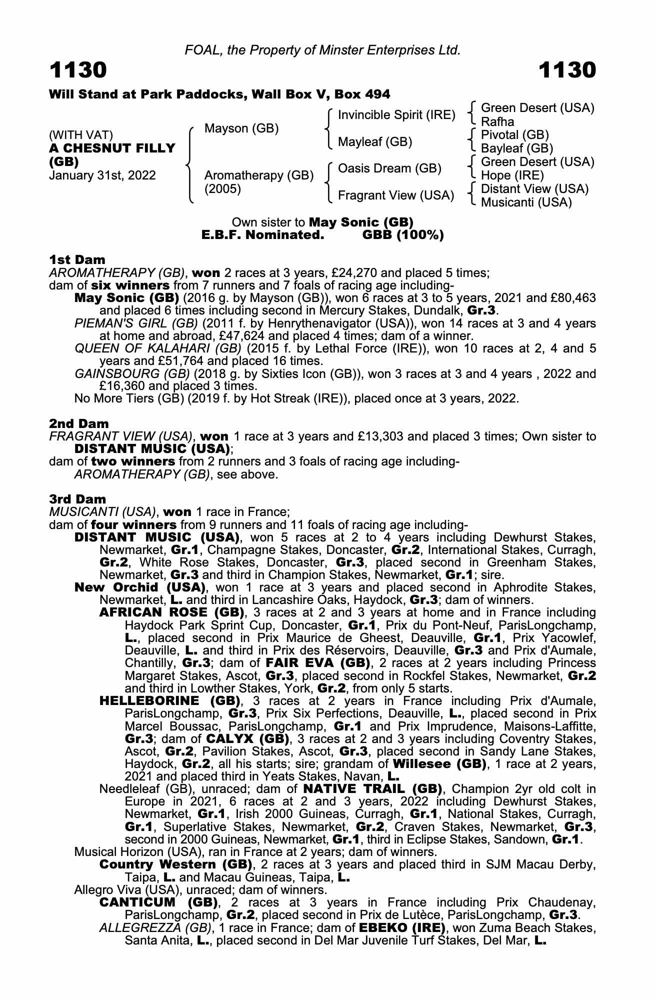 Contact: Mr W H Carson ✆ 07503659506 ✉ info@minsterstud.co.uk
