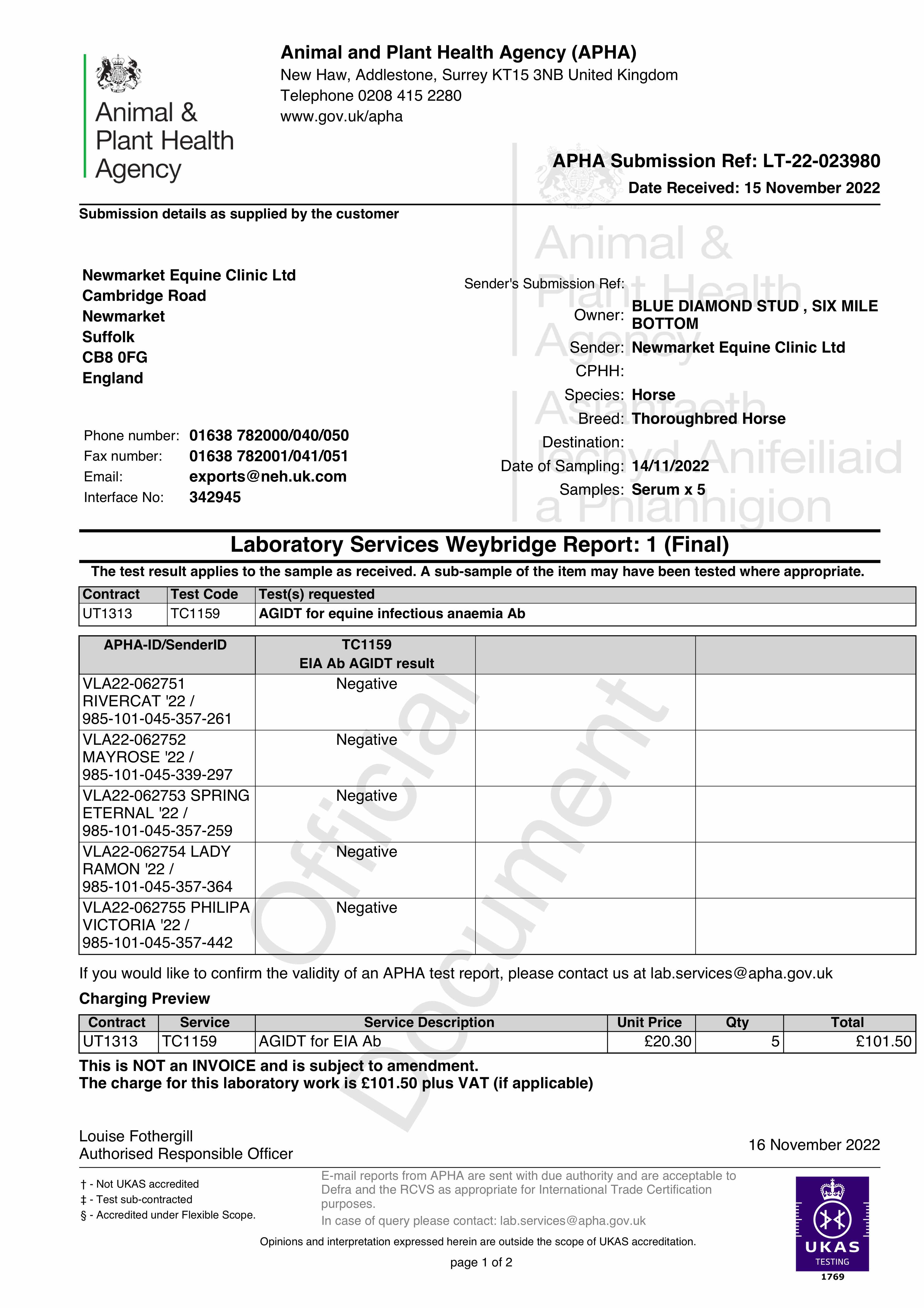 Consignor: Blue Diamond Stud Farm (UK) Ltd.