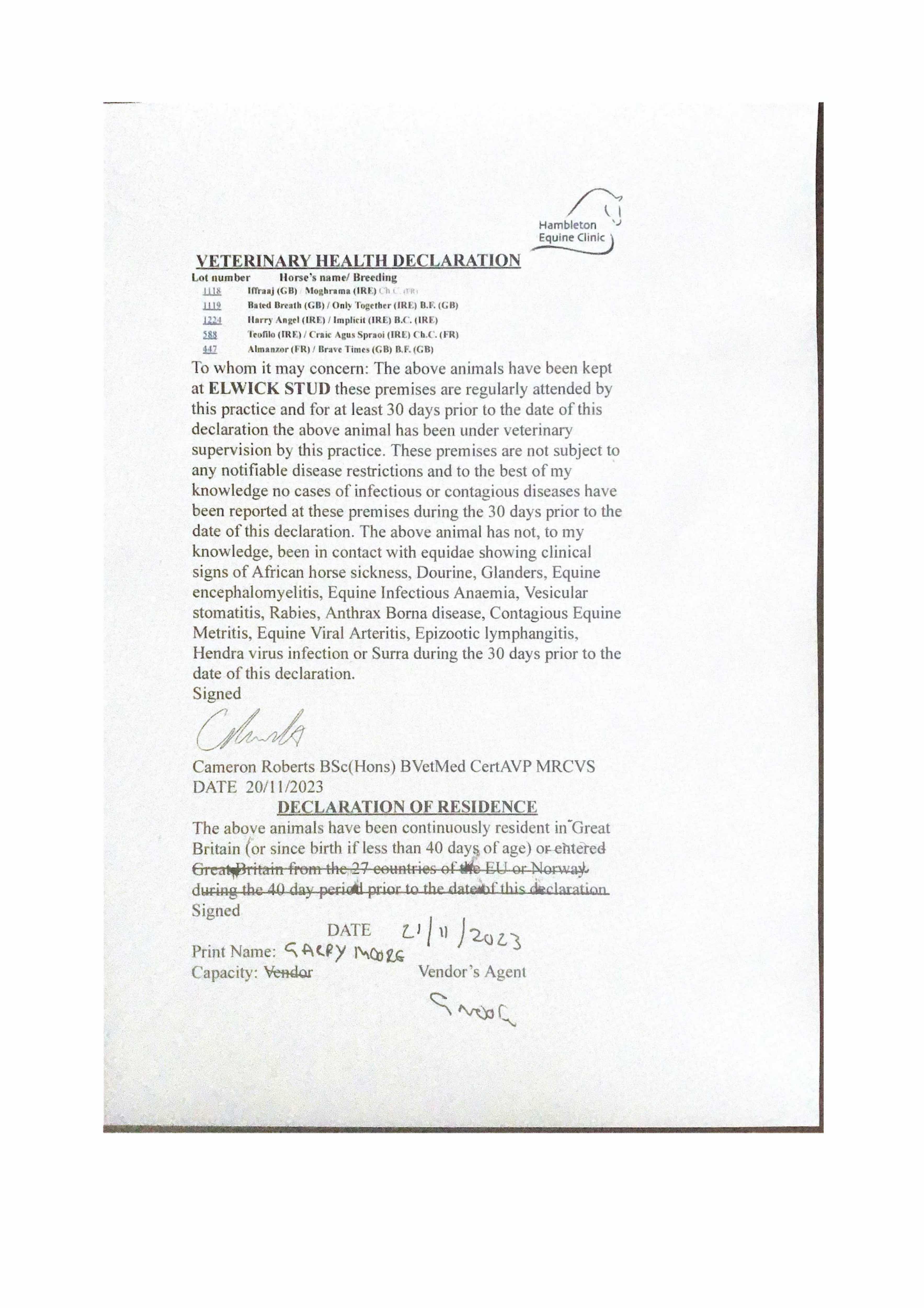 Consignor: Jamie Railton (Agent)