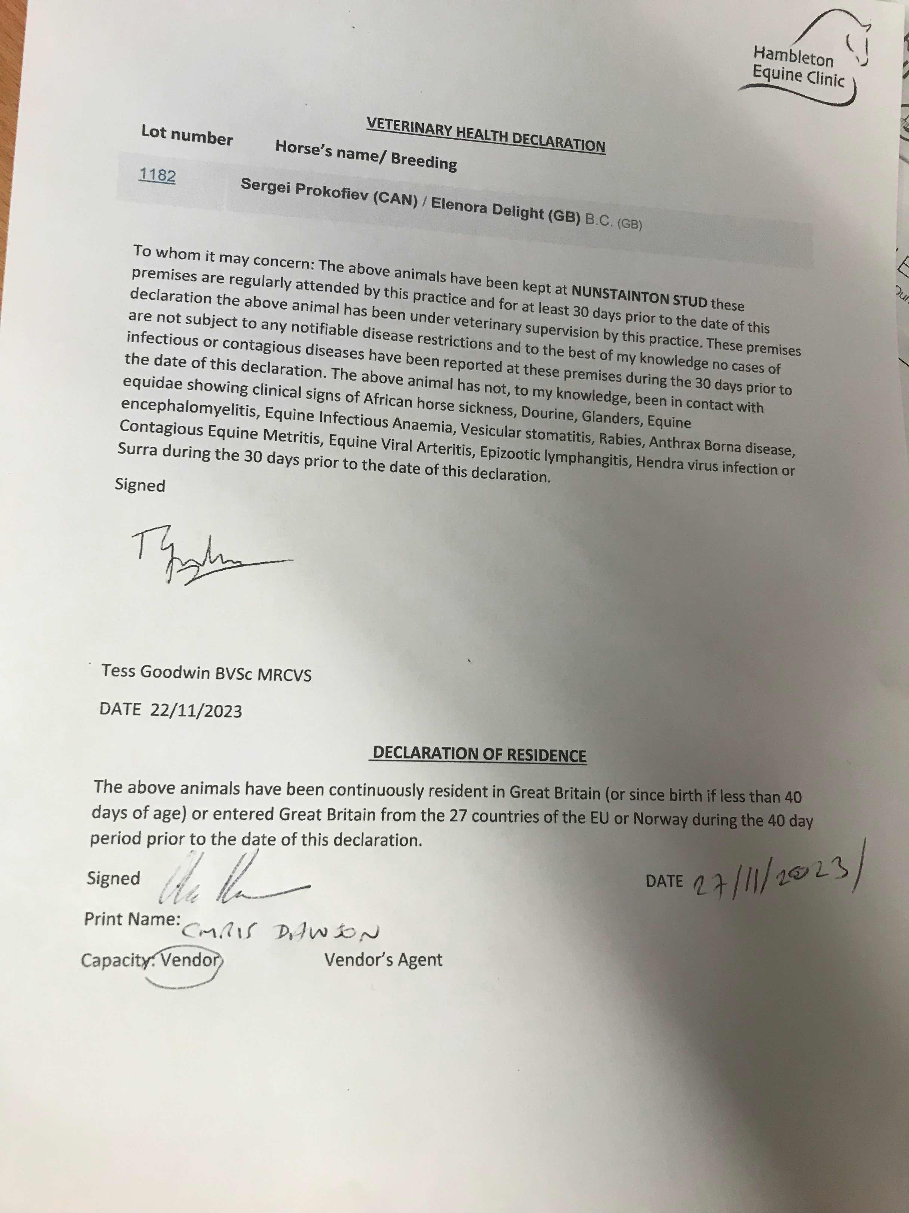 Consignor: Nunstainton Stud