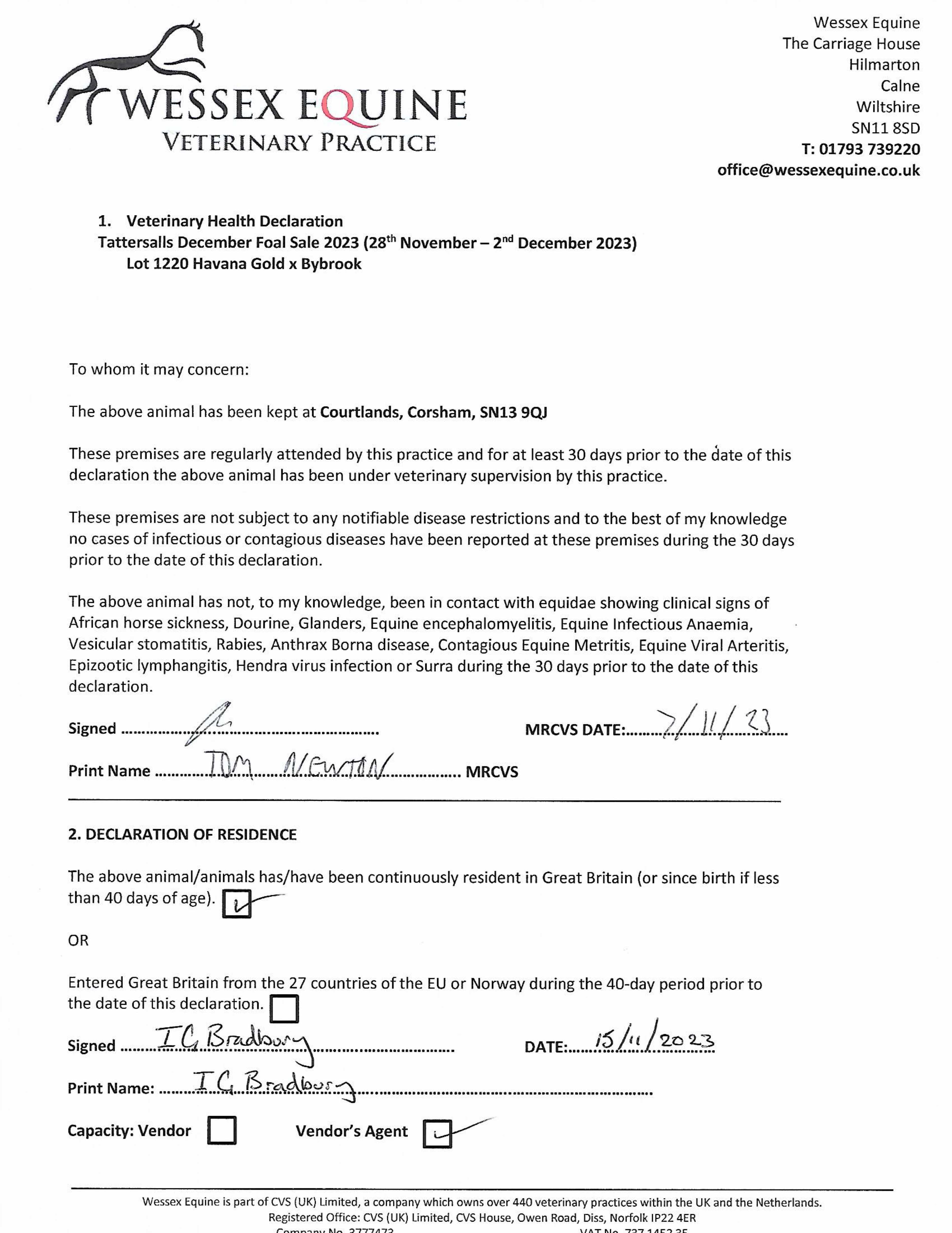 Lot 1220 Havana Gold (IRE) /Bybrook (GB) B.F. (GB)