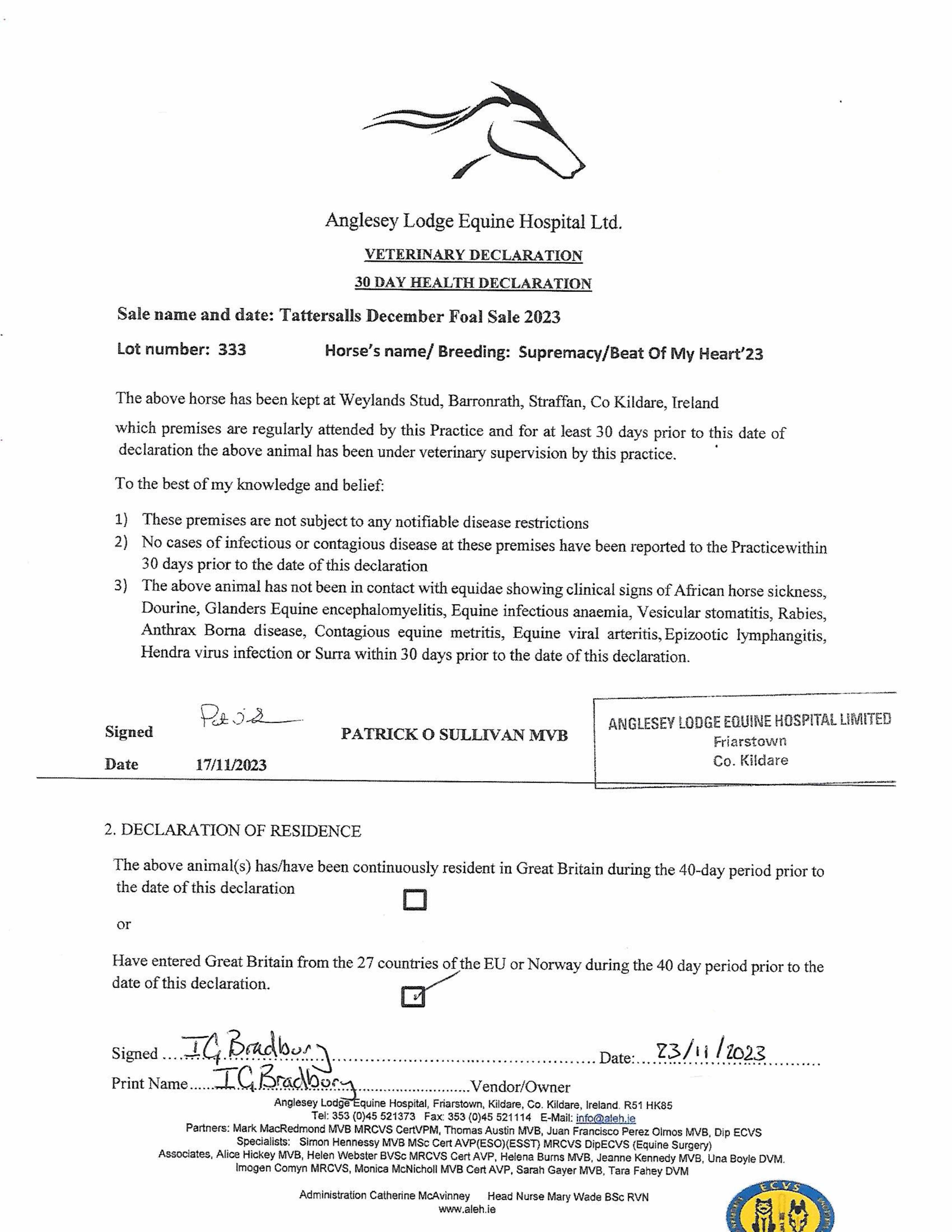 Consignor: Byerley Stud