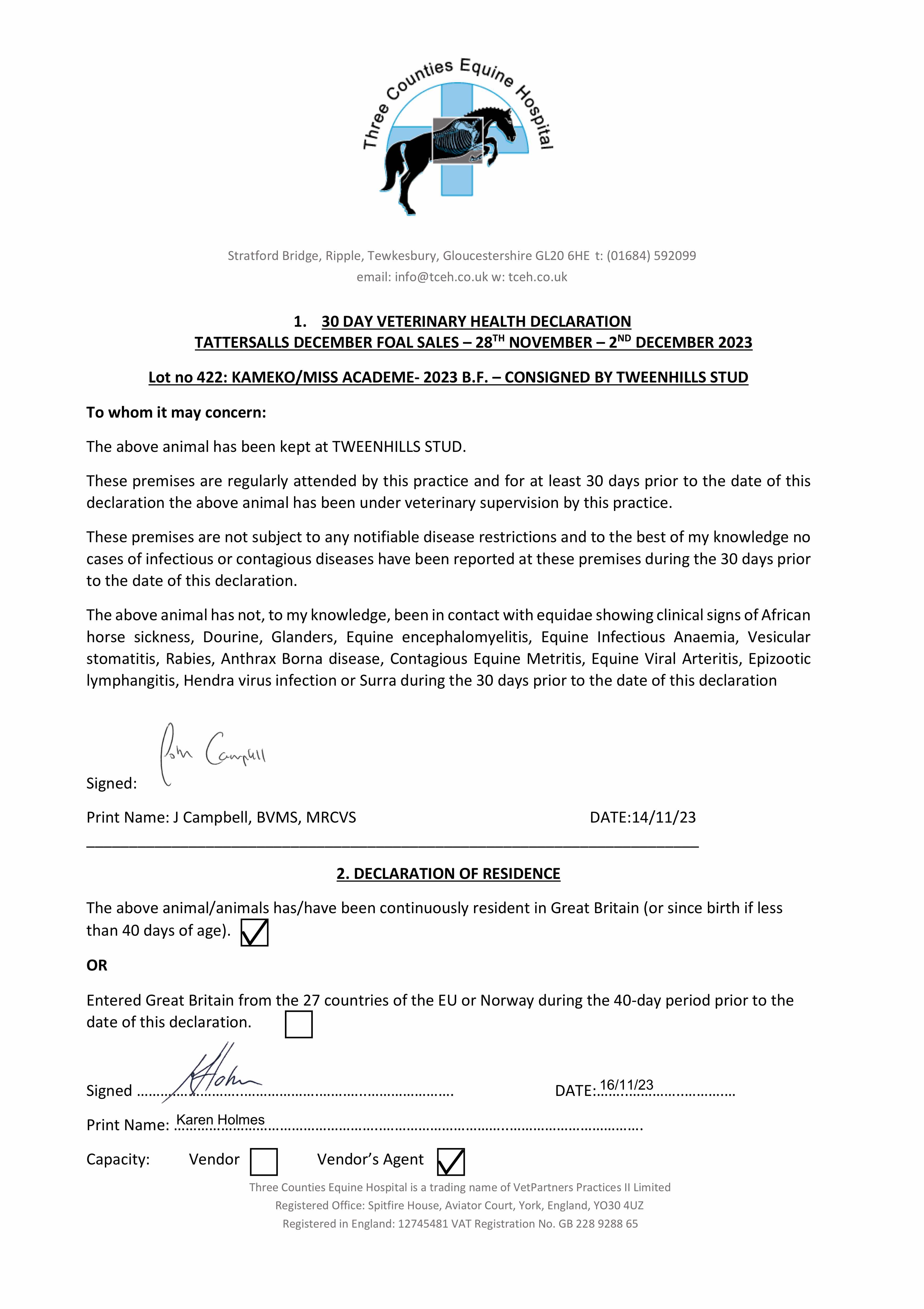 December Foal Sale 2024 lot 1137 F. by Zoustar (AUS) 2024, Whitwell Bloodstock (Agent)=>Willingham 18,000 gns