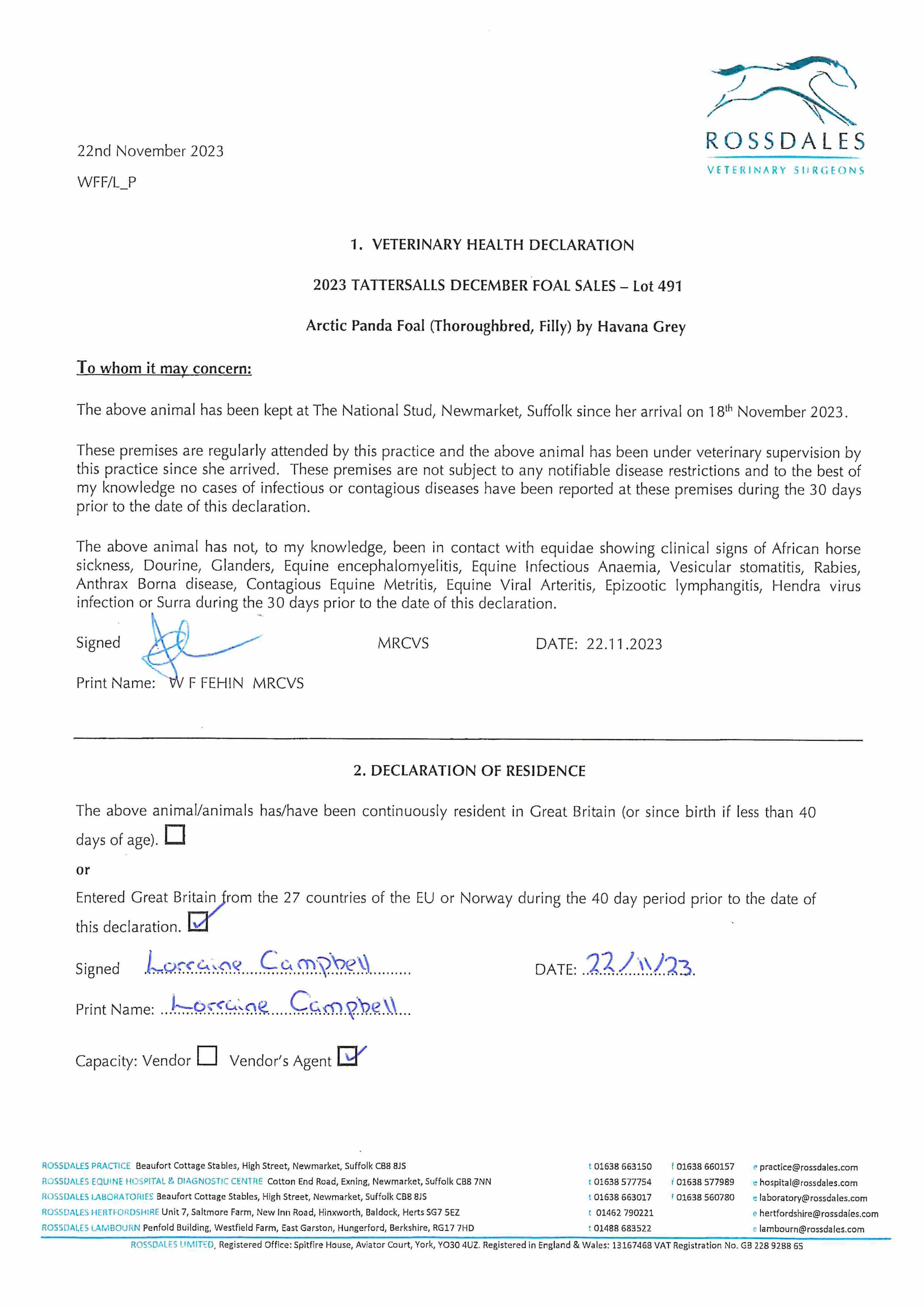 December Foal Sale 2024 lot 1168 C. by Caturra (IRE) 2024, The National Stud Ltd.=>Marley Girls Bloodstock 17,000 gns