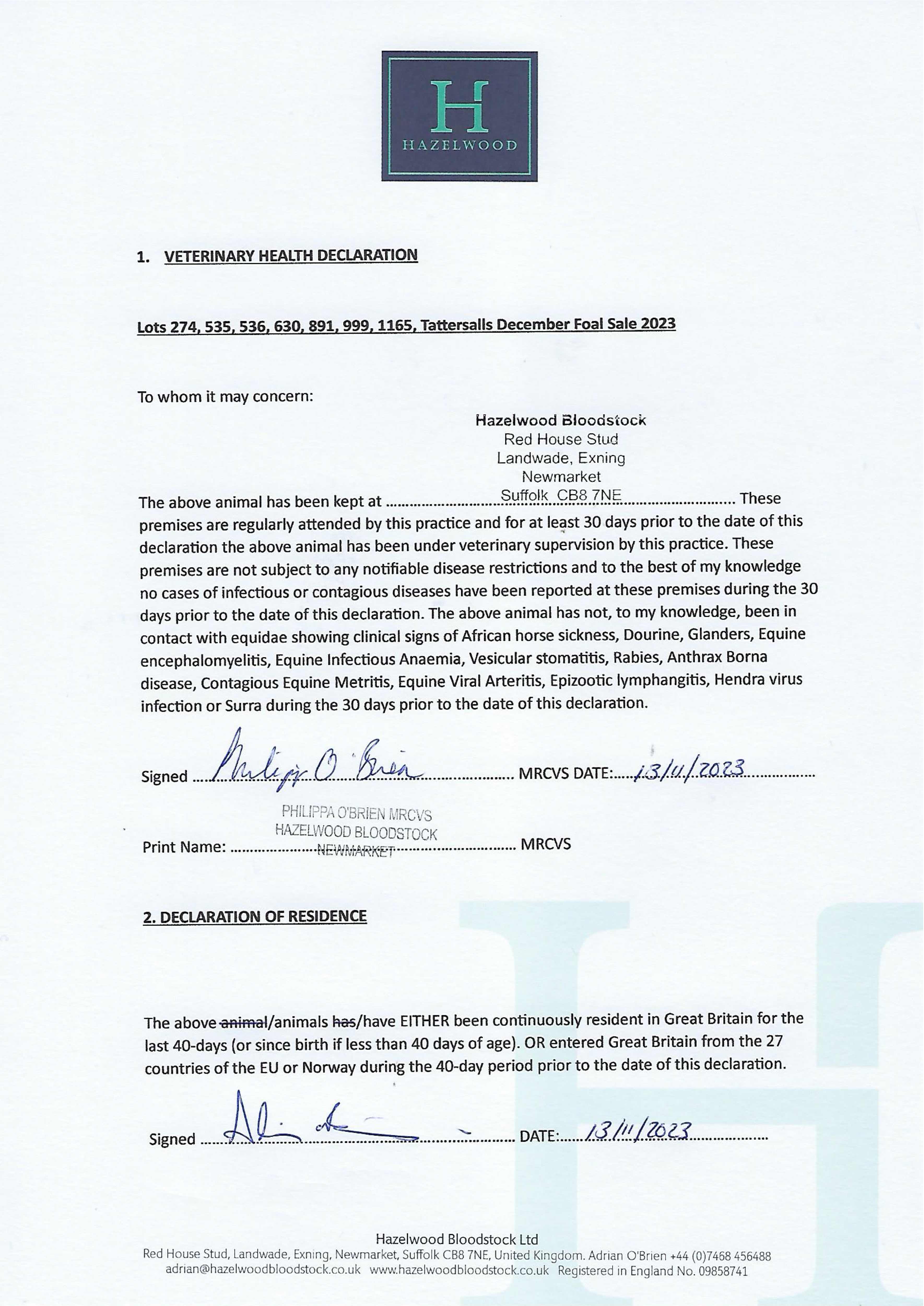 Consignor: Hazelwood Bloodstock