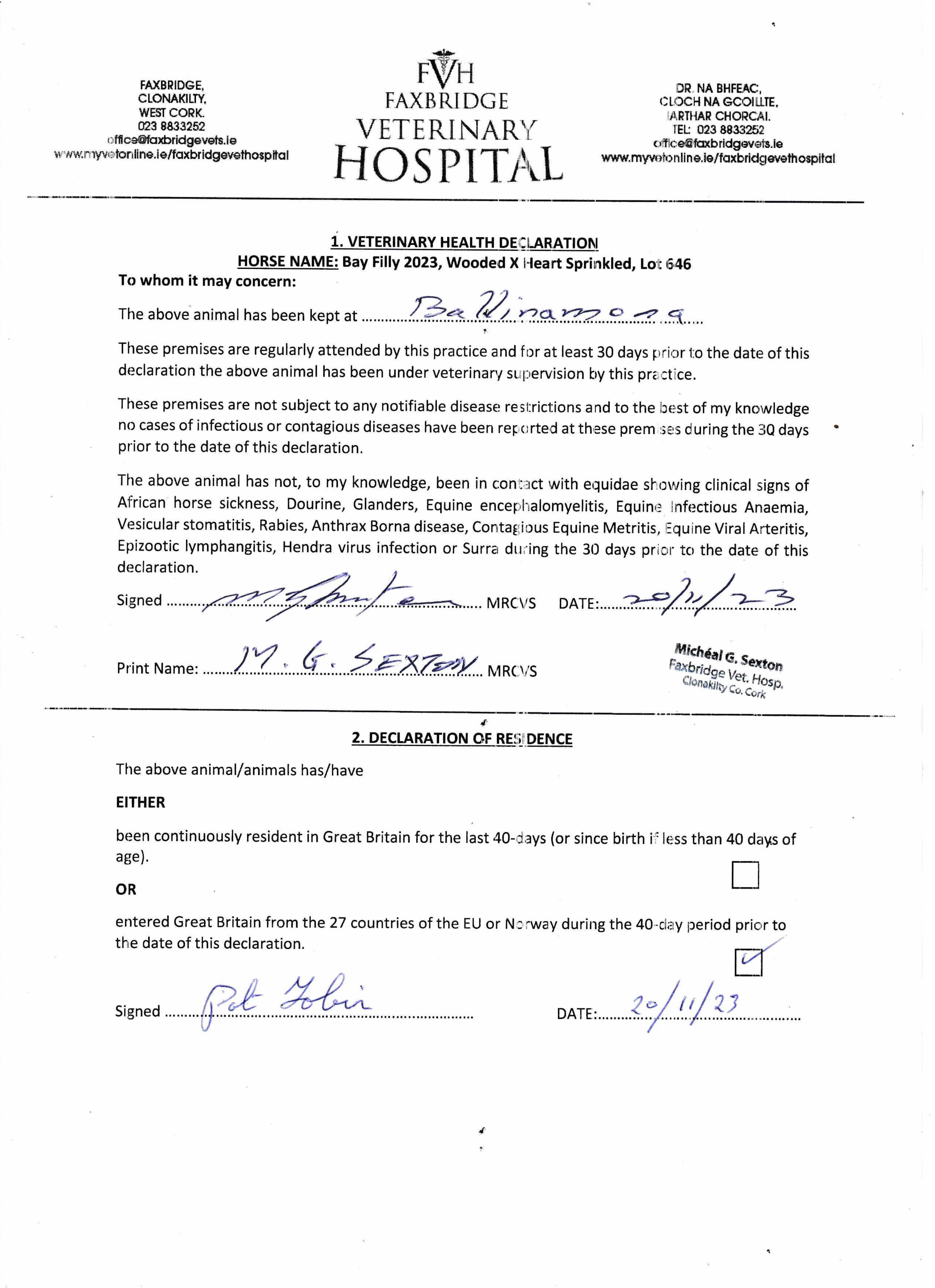 Consignor: Yellowford, Ireland