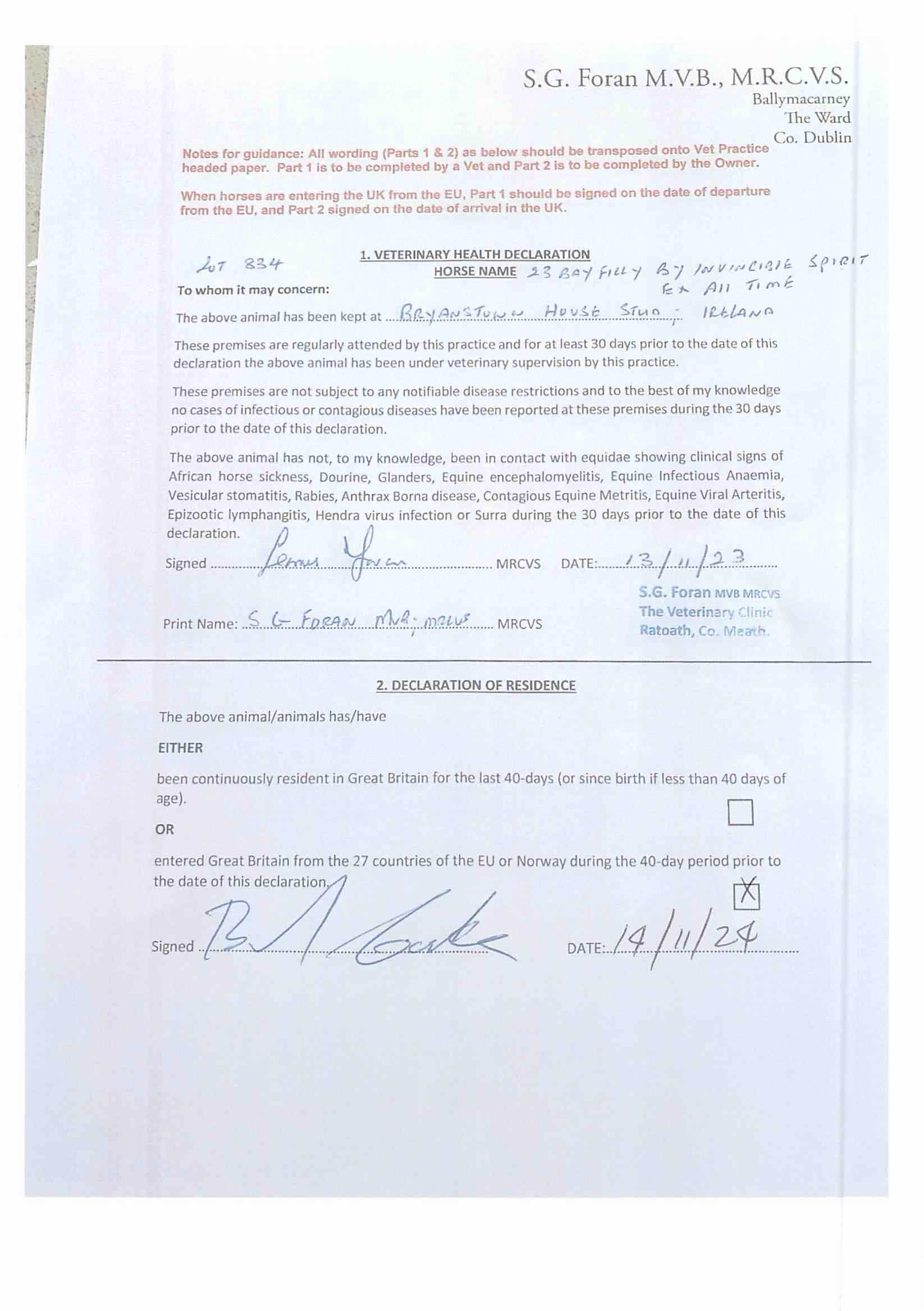 Consignor: Bryanstown House Stud, Ireland