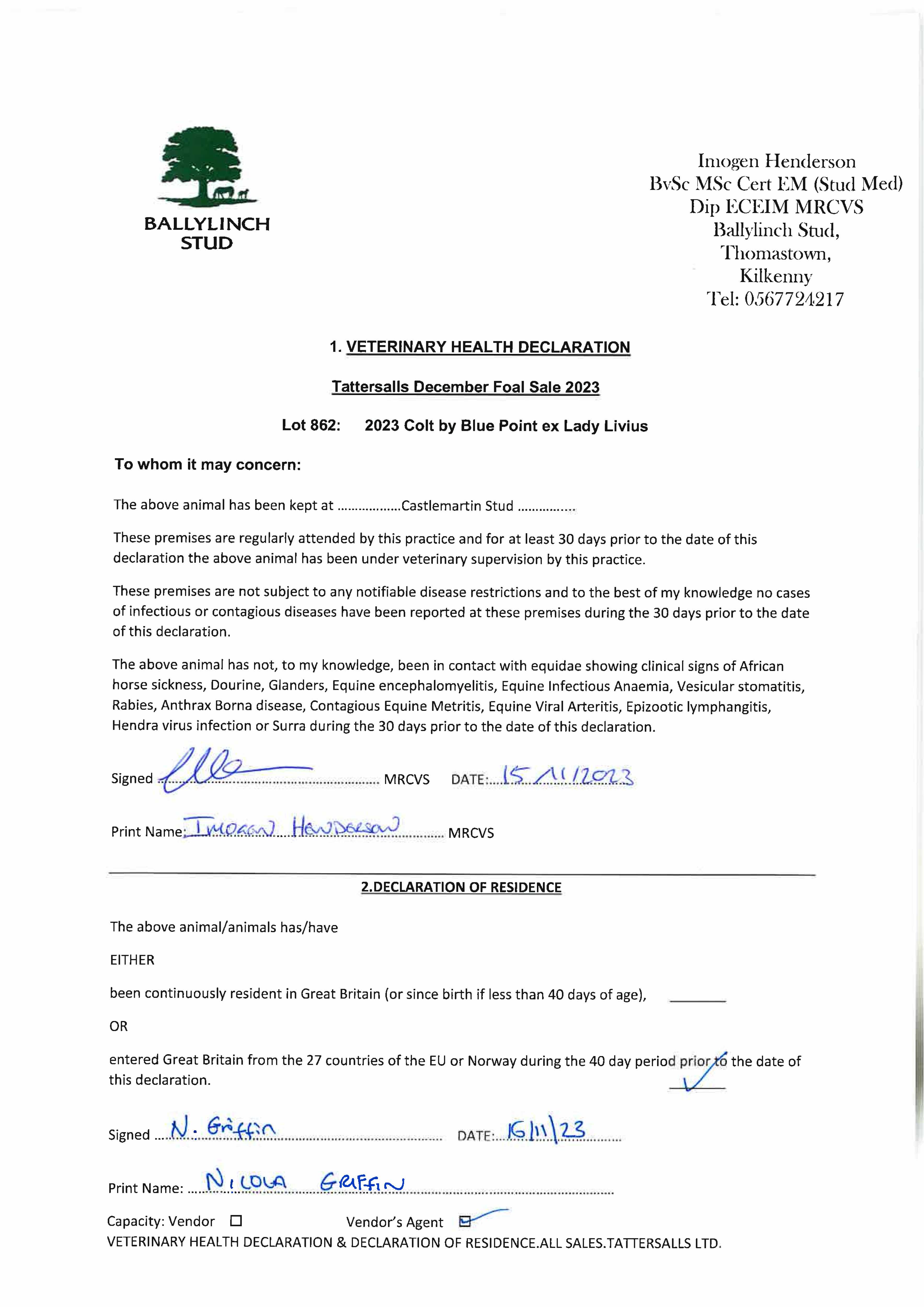 Consignor: Ballylinch Stud, Ireland