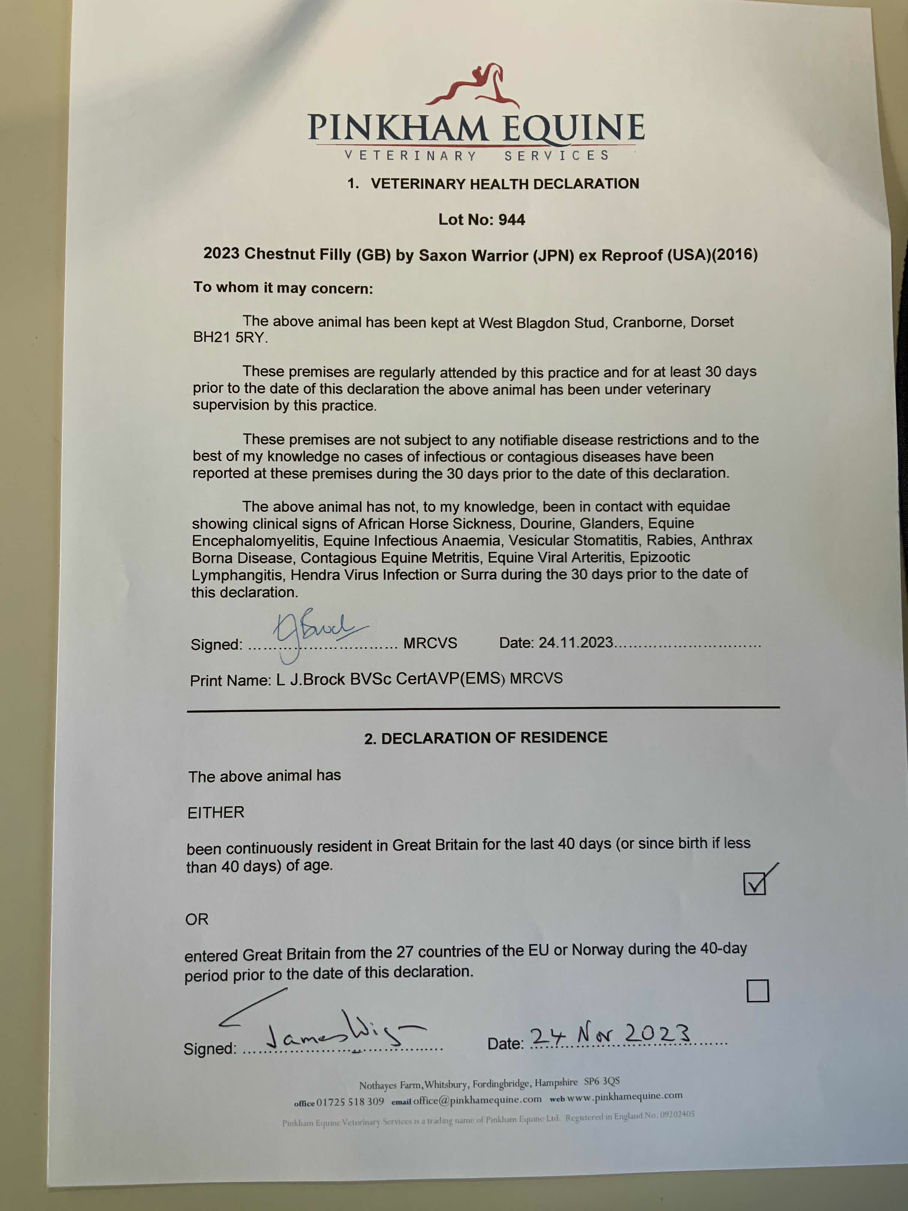 Consignor: West Blagdon Stud