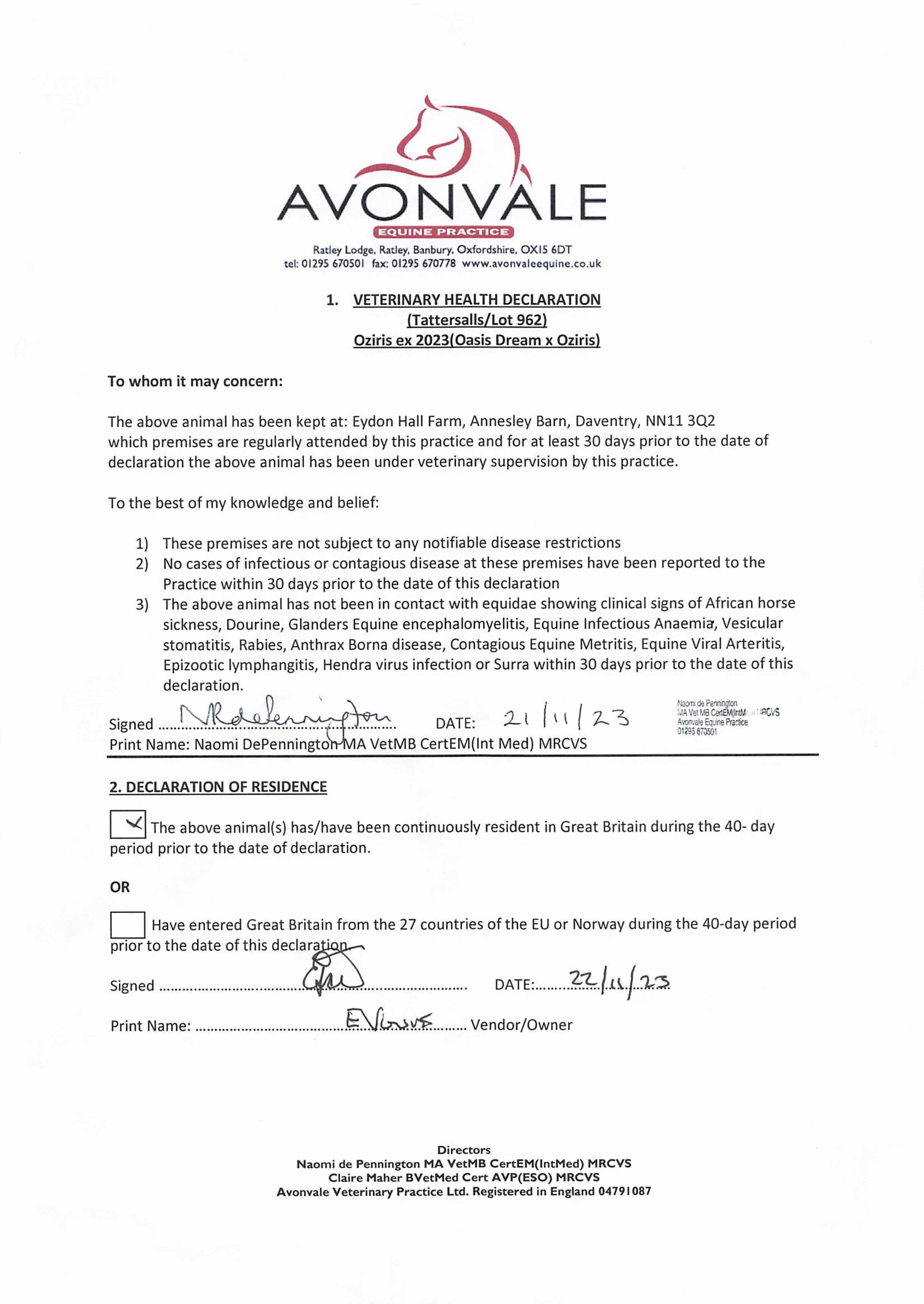 Consignor: Voute Sales Ltd. (Agent)